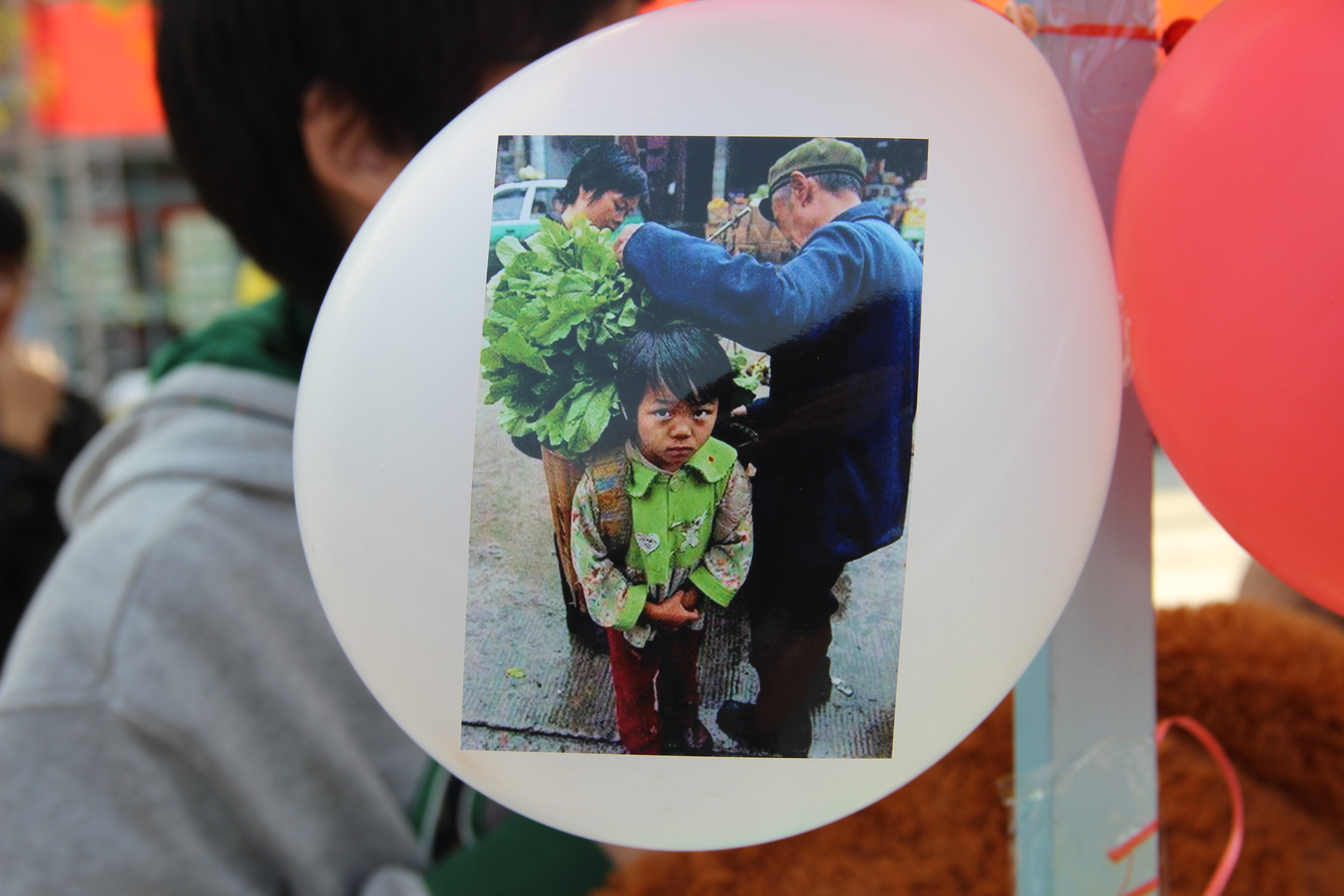 气球上孩子稚嫩的身影