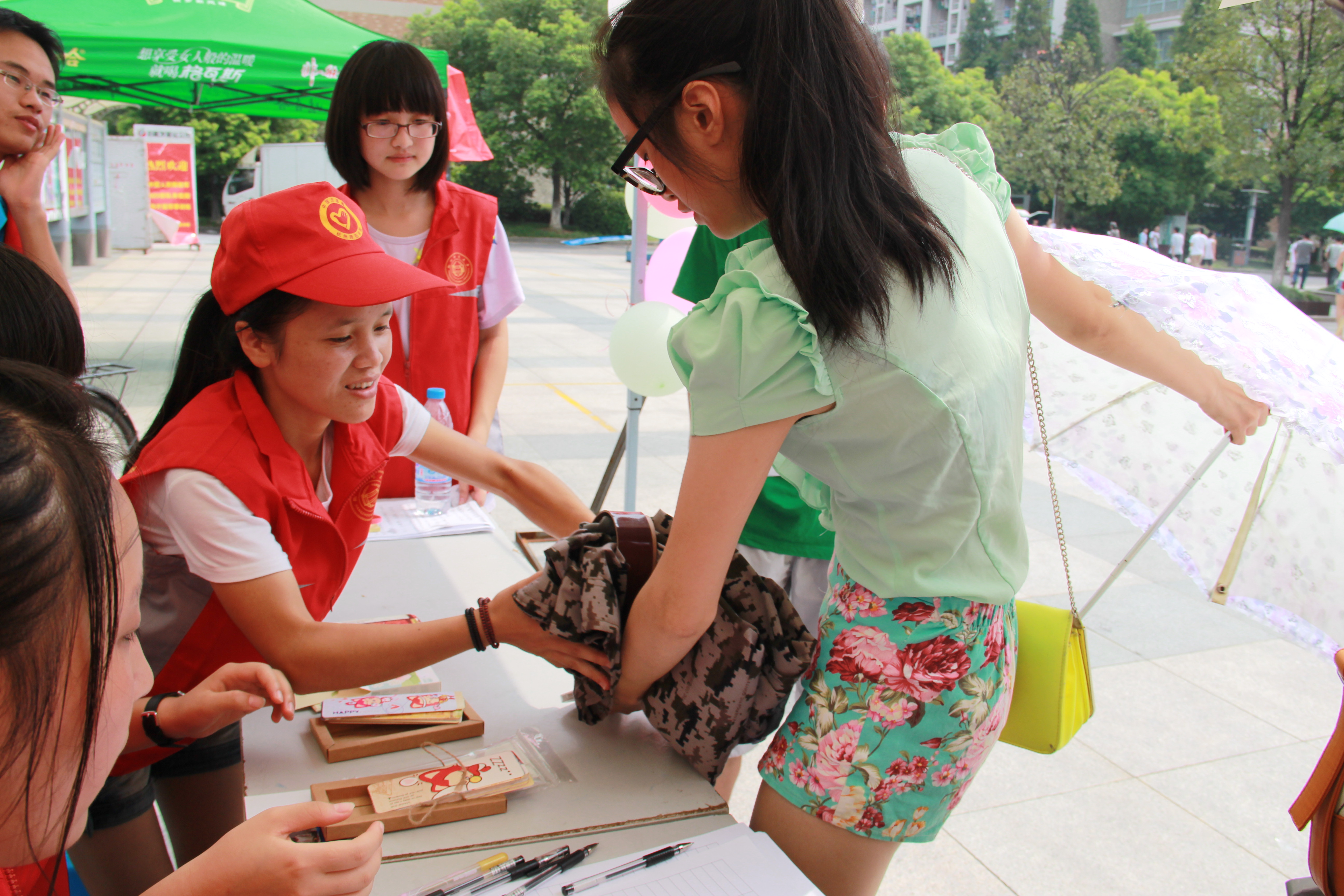 青年志愿者协会举行了“赠你一抹橄榄绿”之军训服装爱心捐赠活动。本次活动受到了全校同学们的积极响应,热情参与。