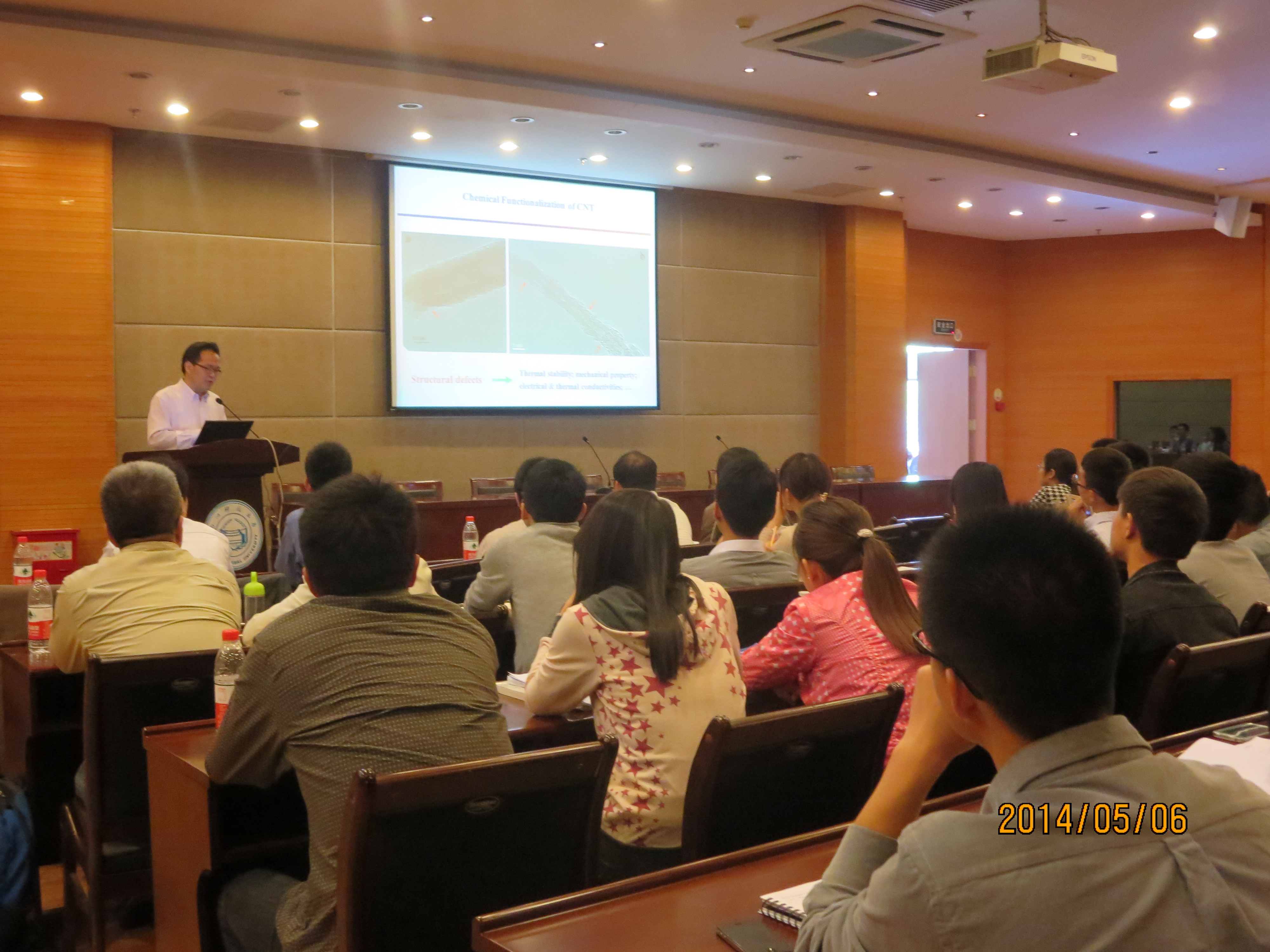 应十大博彩评级网 李勇进教授的邀请,复旦大学高分子科学系副系主任、博士生导师刘天西教授来校讲学,于2014年5月6日下午1:30在我校行政楼叙伦厅做了题为《碳纳米材料的杂化修饰及其高分子复合体系的研究》的报告,相关研究领域的老师、研究生和本科生等参加报告会,李勇进教授主持本次报告会。