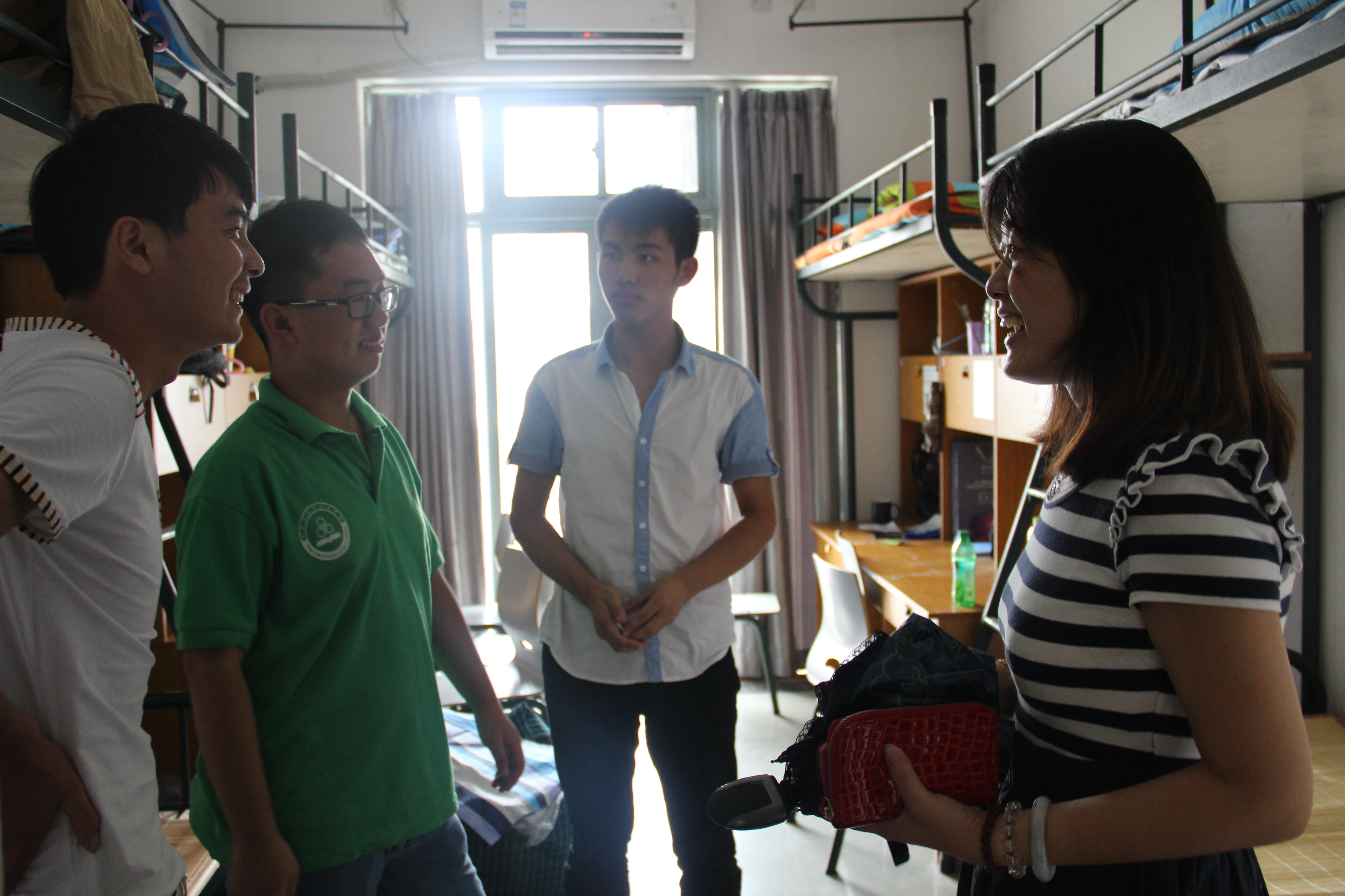 在走访的过程中,院领导们耐心地一个接一个寝室去走访和慰问,解答新生们学习和生活上的问题。领导们还将新生们的近期安排的任务进行讲解,并再三嘱咐新生们要做好安全工作,保管好随身物品。老师们也对新生们寄予了殷切期望,希望同学们能做到一个寝室,一个家庭,一个集体,相互友爱,建立温馨和谐的寝室氛围。对于生活和学习上遇到的问题,可以与学长学姐和辅导员们沟通交流,在场的家长纷纷向院领导和老师们握手表示感谢。