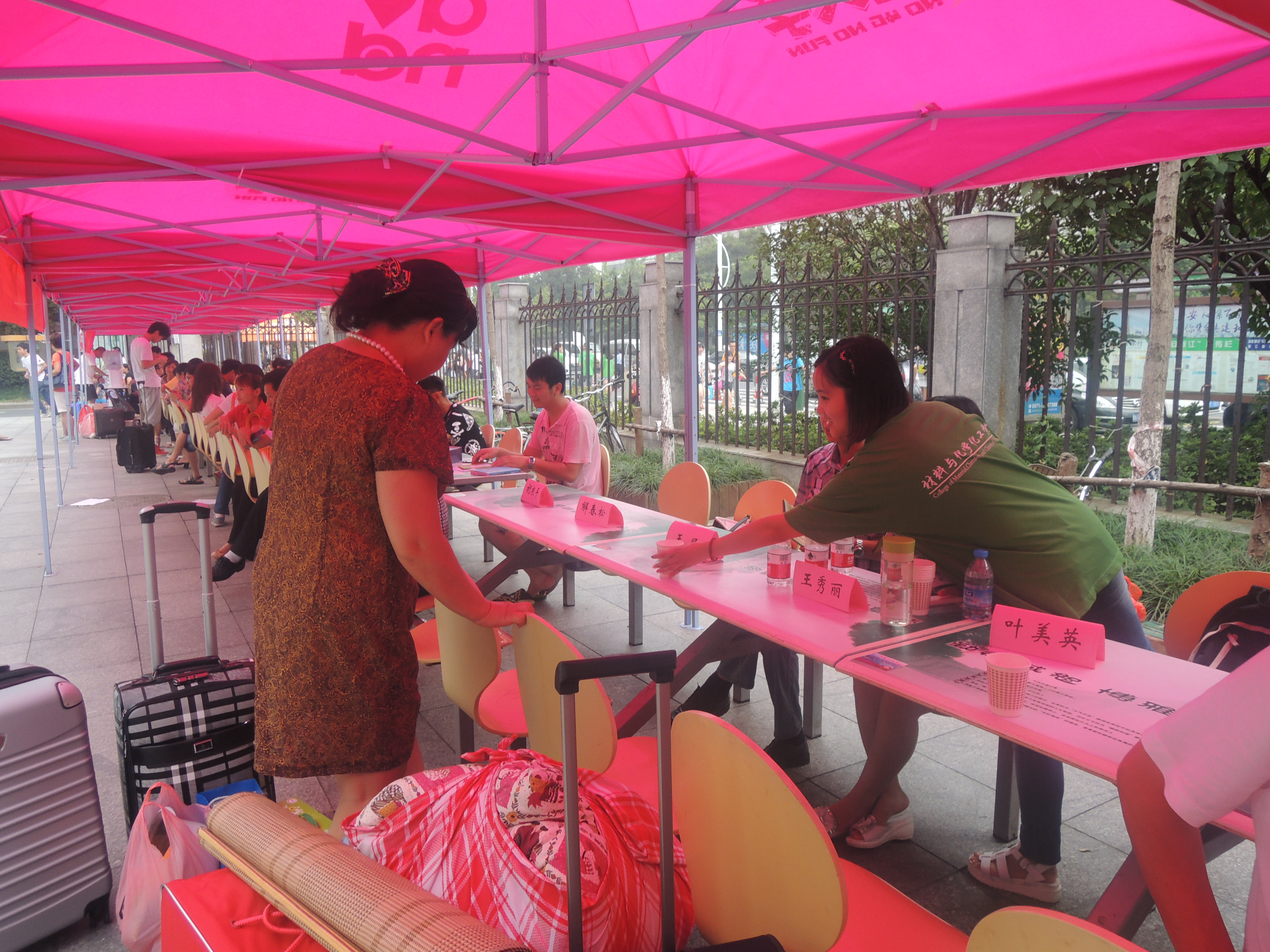 炎炎夏日,志愿者的衣着虽被汗水浸透,可他们接待新生的热情不减;接二连三的引路,帮助,咨询等工作疲惫了志愿者们的身躯,可每一个新面孔都给了他们新的动力;用微笑拉近距离,用帮助温暖人心,用解答移除困惑,志愿者们的作用也是不可小觑的。无论是报到点,家长休息处,还是生活区入口到寝室楼,哪里需要帮助,哪里就有志愿者的身影。