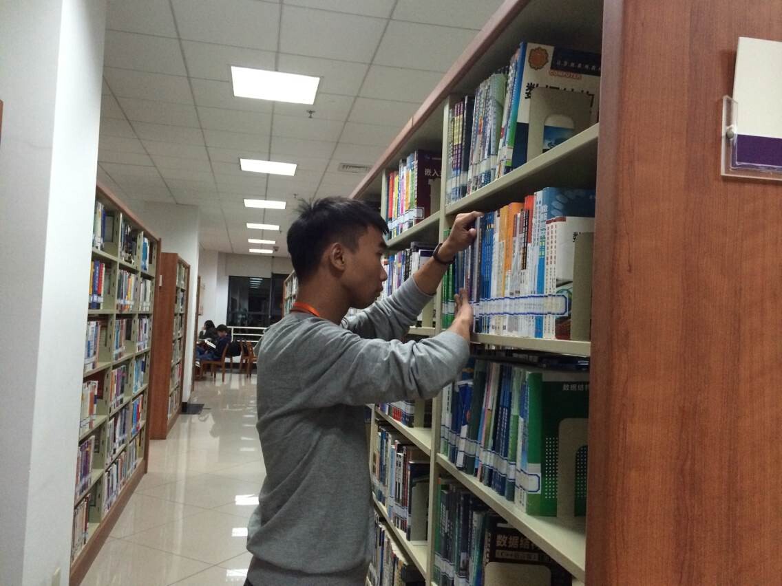 面对书架上参差不齐或是站错位的书本,志愿者们耐心地3将一排排杂乱的书籍排列整齐,用一丝不苟的动作把一本本书归回原位。在完成了大部分书籍的整理后,志愿者们开始了图书馆的秩序维护。看到有正在交谈的同学,志愿者们及时地提醒他们放低声音,让其他同学能安静地学习。此外,为了让图书能够无限地传阅,他们轻声而又耐心地叮嘱同学们要爱惜书本。这些一遍遍的温馨提醒,传递着志愿者的暖暖情意,也寄托着所有学生能够一起营造良好的学习氛围的美好愿望。在短短的一个小时里,志愿者们坚守自己的岗位,都在为共同的目标践行着应尽的职责。志愿活动临近结束的时候,志愿者们的辛勤劳动得到了值班老师的认可,他们也在图书馆的管理方面提出自己的一些建议。