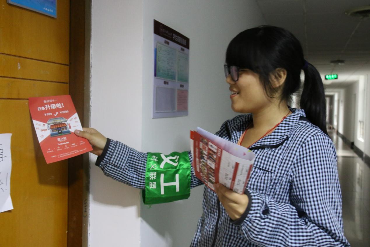 义工联盟在寝室楼展开寝室传单活动。博彩网
