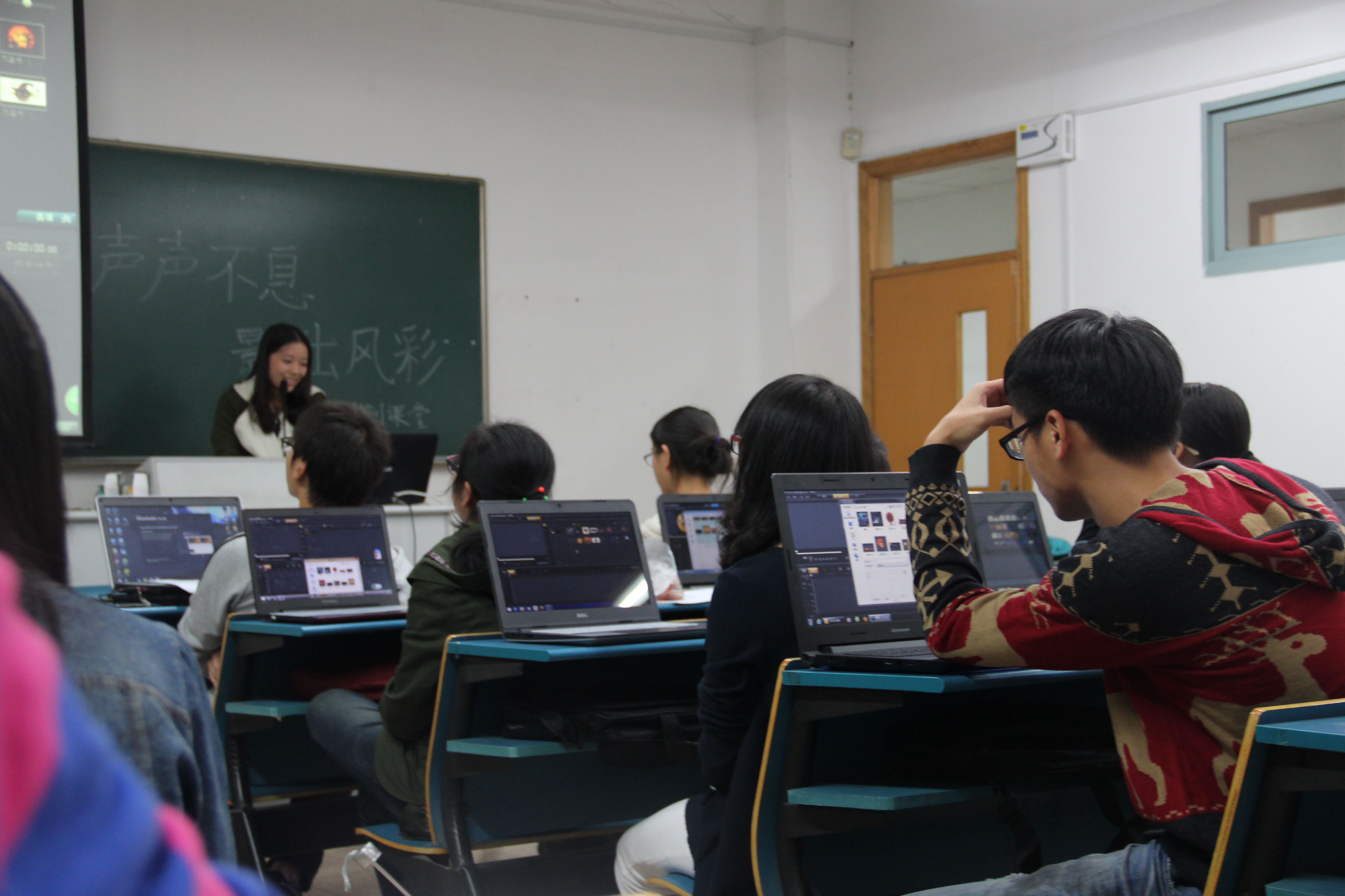 活动伊始,灵创部长沈涵渝面对面地教授会员们关于会声会影各项基本功能的具体操作,主要为素材的导入,音频、视频的剪辑,转场、字幕、滤镜的使用,逐步给会员们展示会声会影这款视频处理软件强大的编辑效果。在讲解的同时,会员们也在座位上认真的操作着。