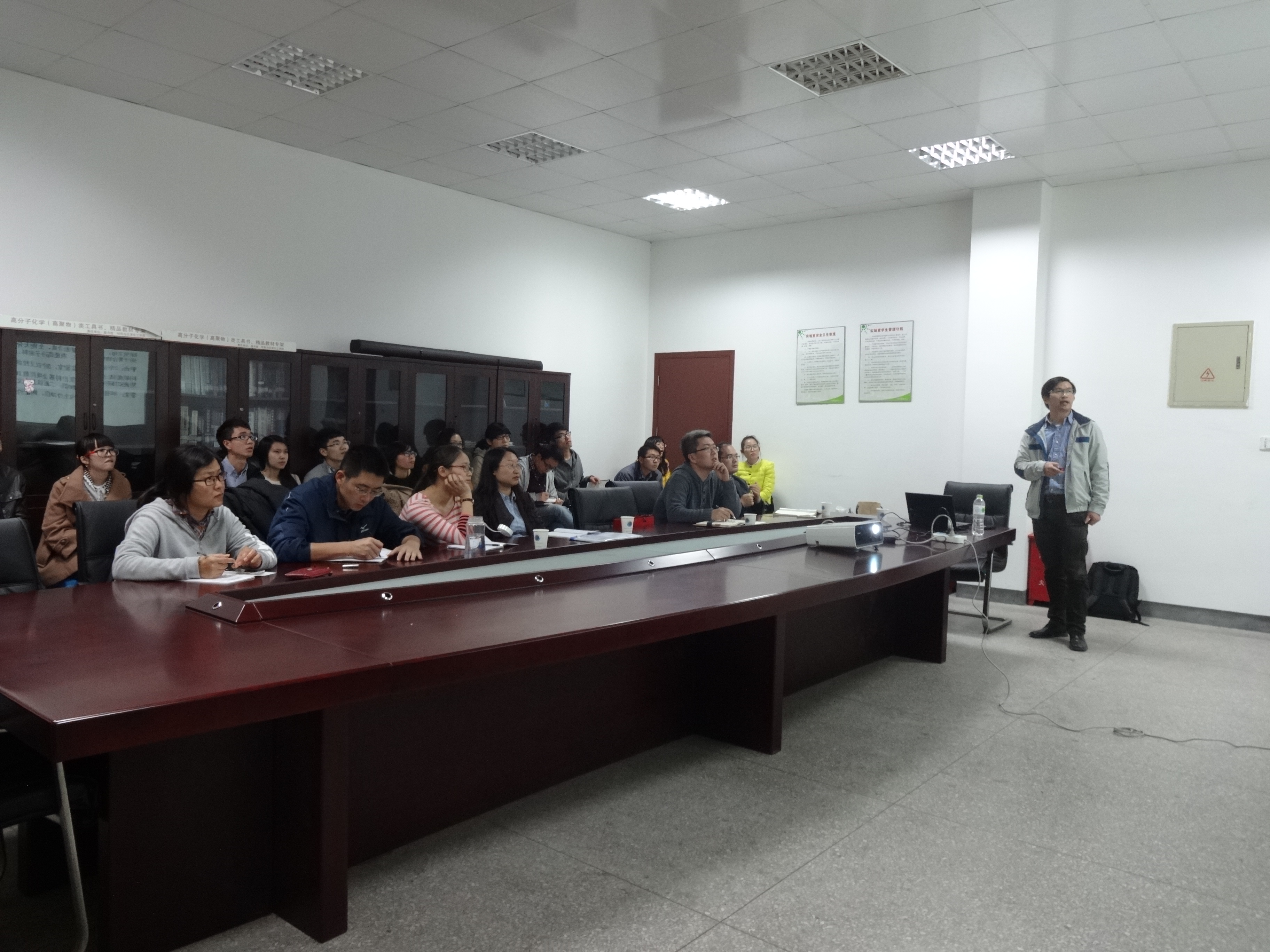 在座师生聚精会神听讲、认真笔记、积极思考,在报告结束后与屠迎峰教授交流自己的疑惑,屠教授耐心的一一回答。师生们对嵌段共聚物和超分子有了更深刻的认识,纷纷表示受益匪浅,深受启发。