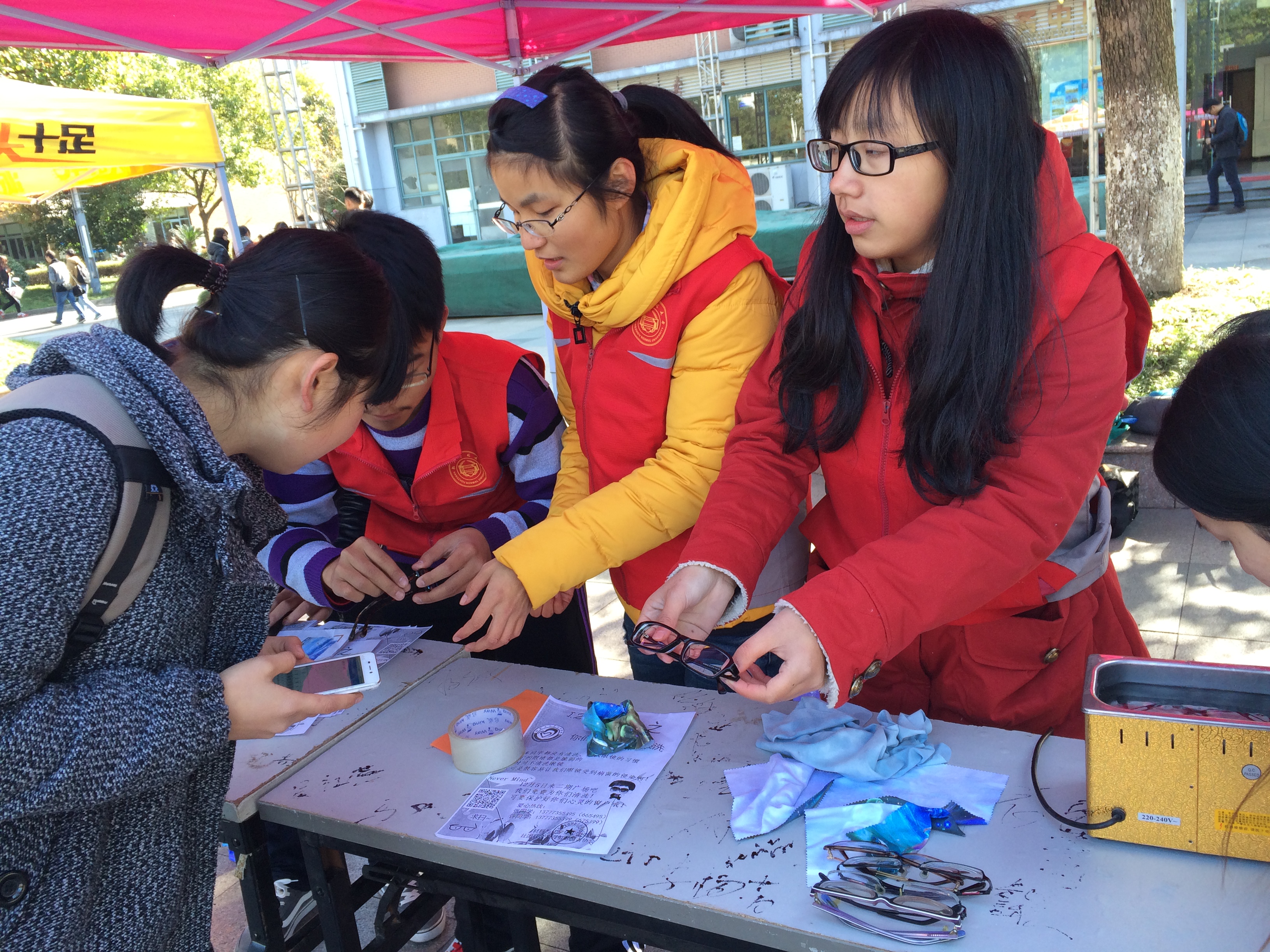 青年志愿者协会在二期广场开展了爱眼活动。青协志愿者们积极地参加了此次活动。