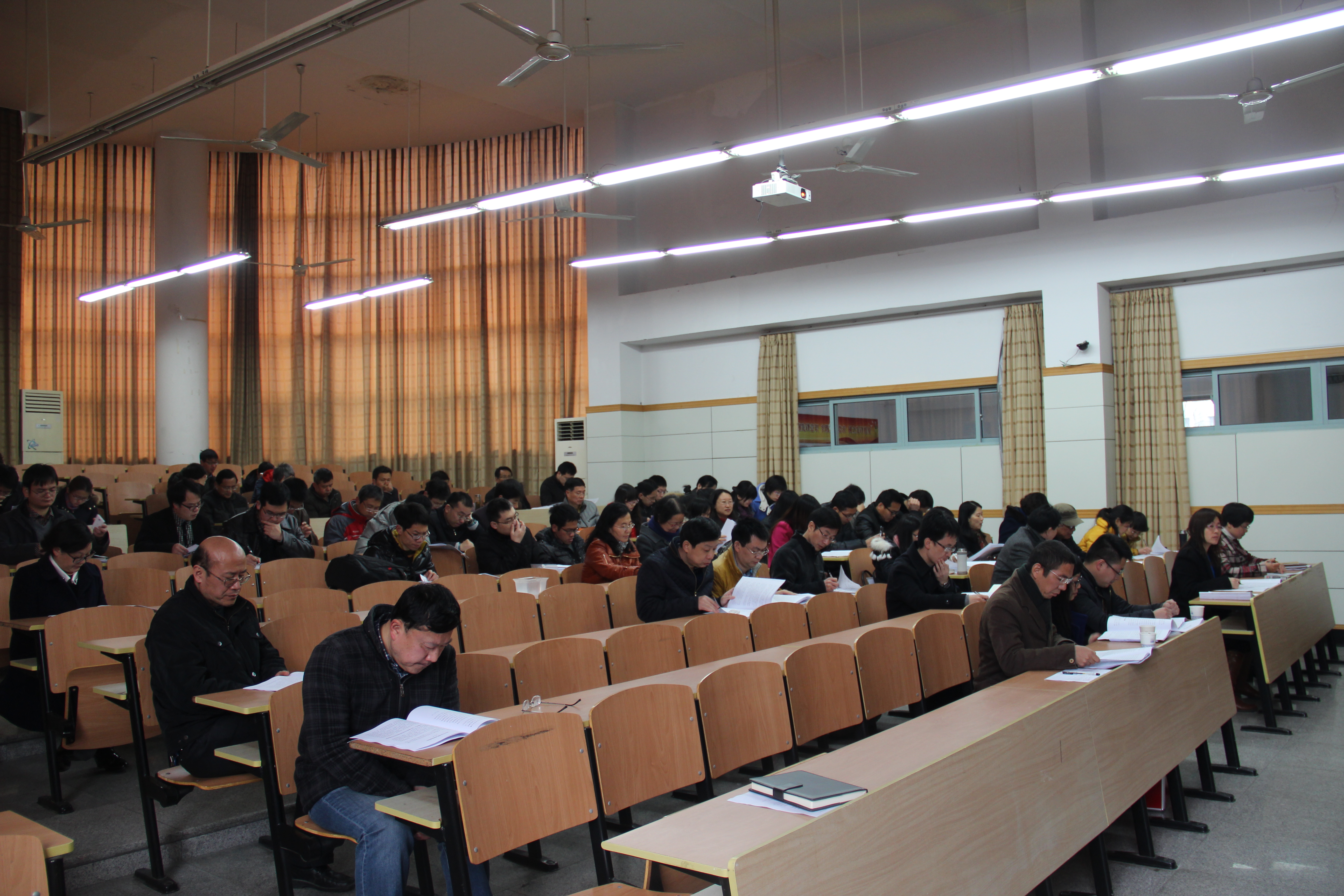 3月8日上午,博彩网 新学期教职工大会在下沙D楼223教室举行。全体教职工参加了会议,会议由执行院长邱化玉主持。会议分为两个议程,一是进行博彩网 领导班子及领导干部2014年度考核测评;二是布置新学期工作。