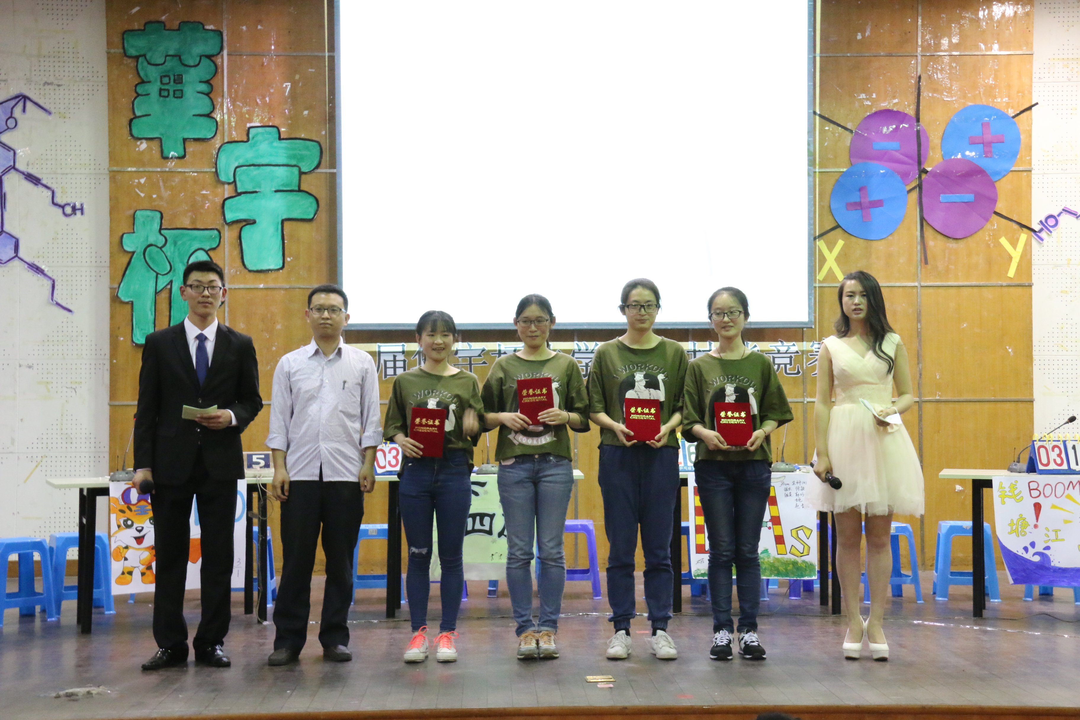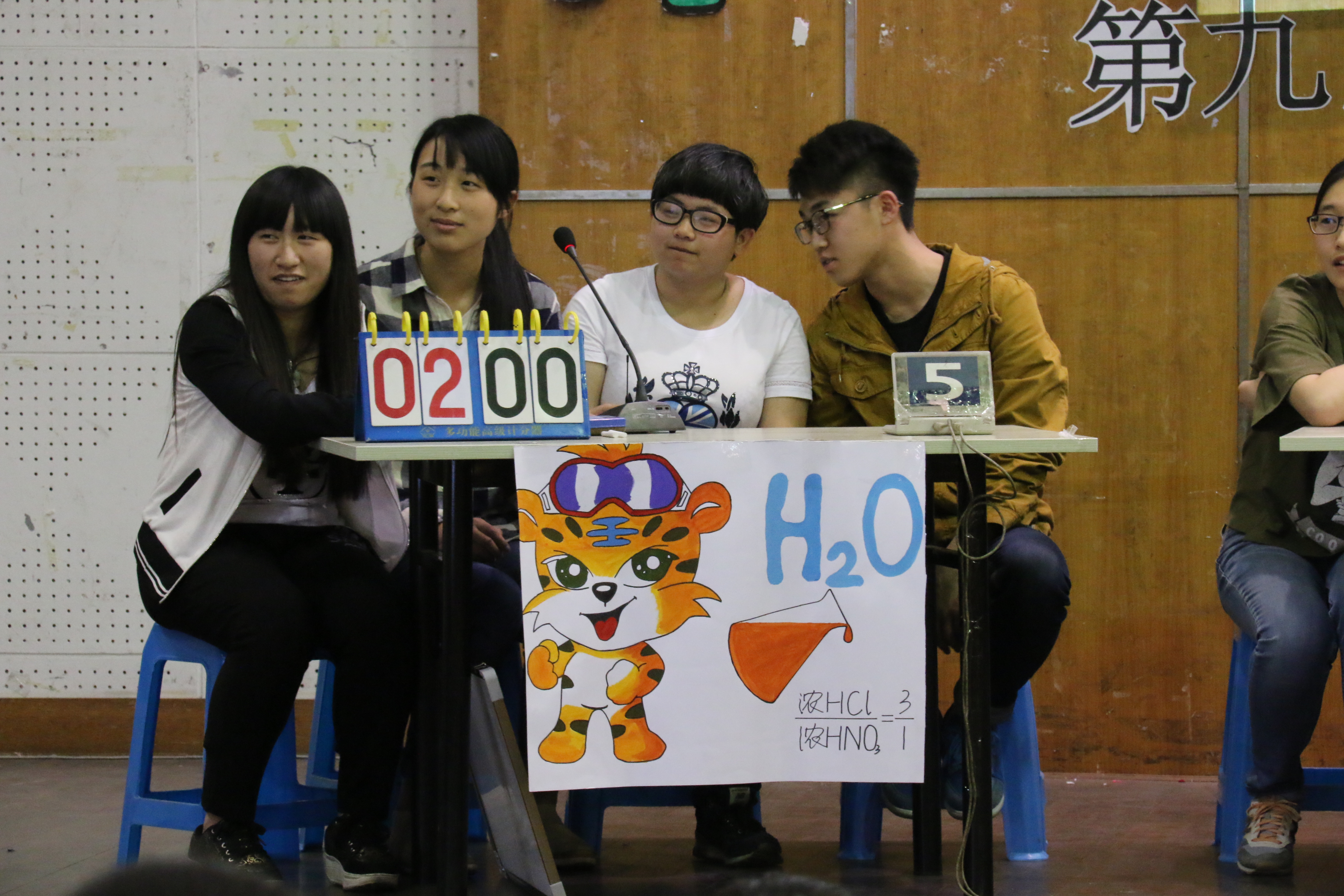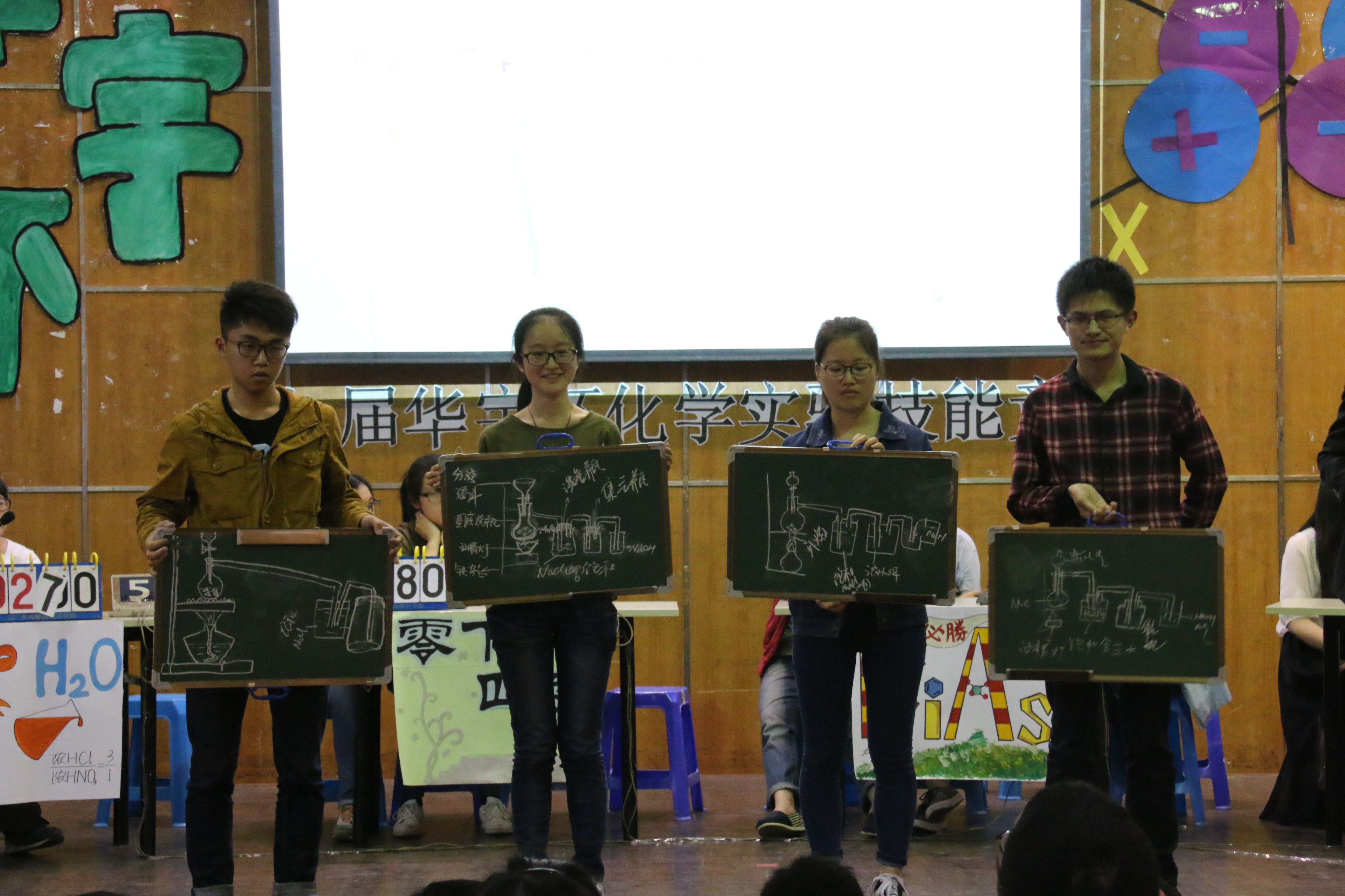 在进入终极PK的四支队伍分别上台介绍各自的组员和口号后,决赛正式展开。本场竞赛分为必答题、抢答题、实验操作题和风险题四个环节。在抢答环节中,各支队伍之间的竞争十分激烈,彼此的牵制更是引得观众忍俊不禁。在实验操作题中,各队伍的周密考量也赢得了评委老师的认可。在各环节的竞争中,无论面对出题方给出怎样的题型,一些队伍的组员都能对答如流,个别队伍所表现出来的化学知识面之广更是让在座专业学生都折服。