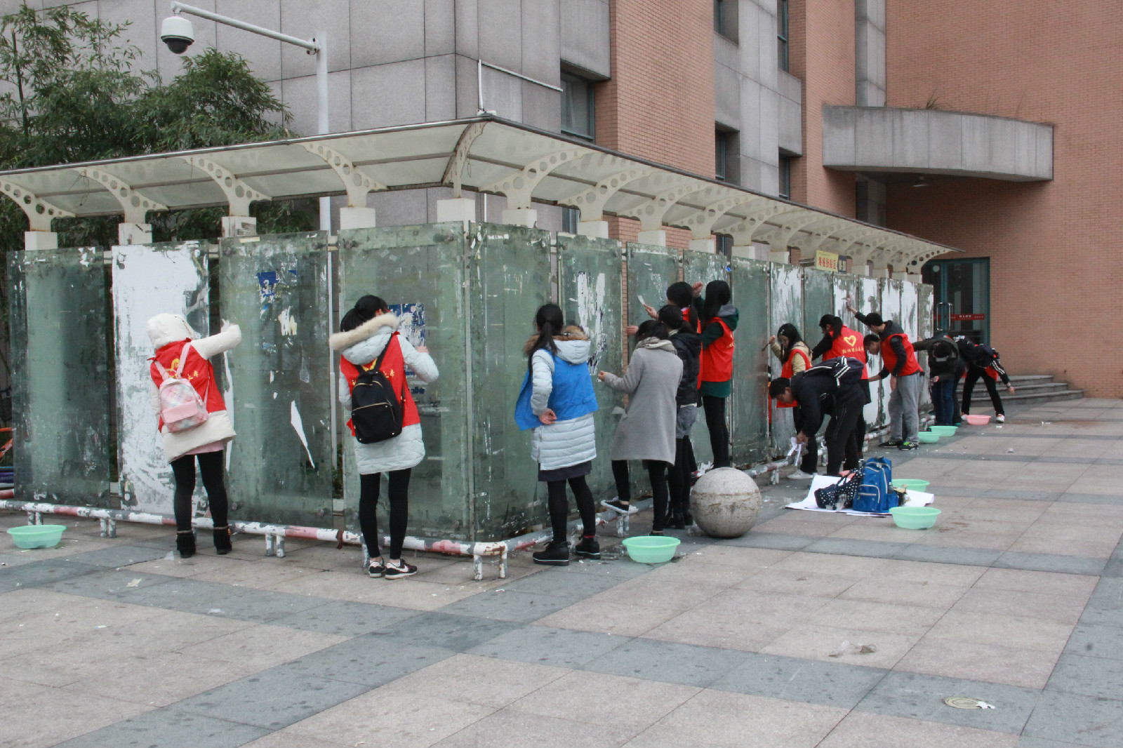 志愿者清洗海报板