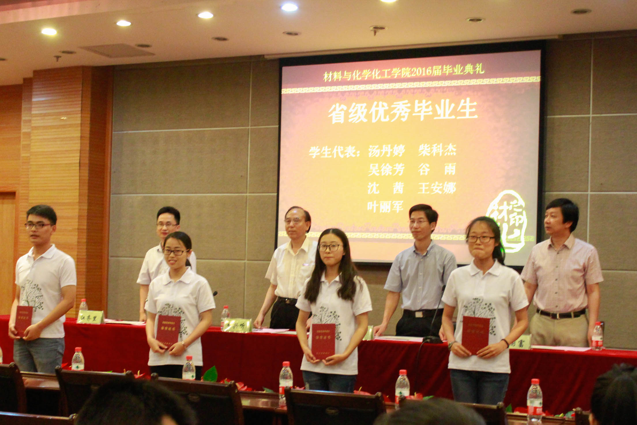 6月15日下午,博彩网 2016届毕业典礼在行政楼叙伦厅隆重举行,博彩网 党委书记李兴听、副书记江齐里、副院长李世军、教授代表钟国富、办公室主任黄小兰、化学121班主任董文勇、制药121班主任潘建林、团委老师白芸、潘玉银应邀出席。