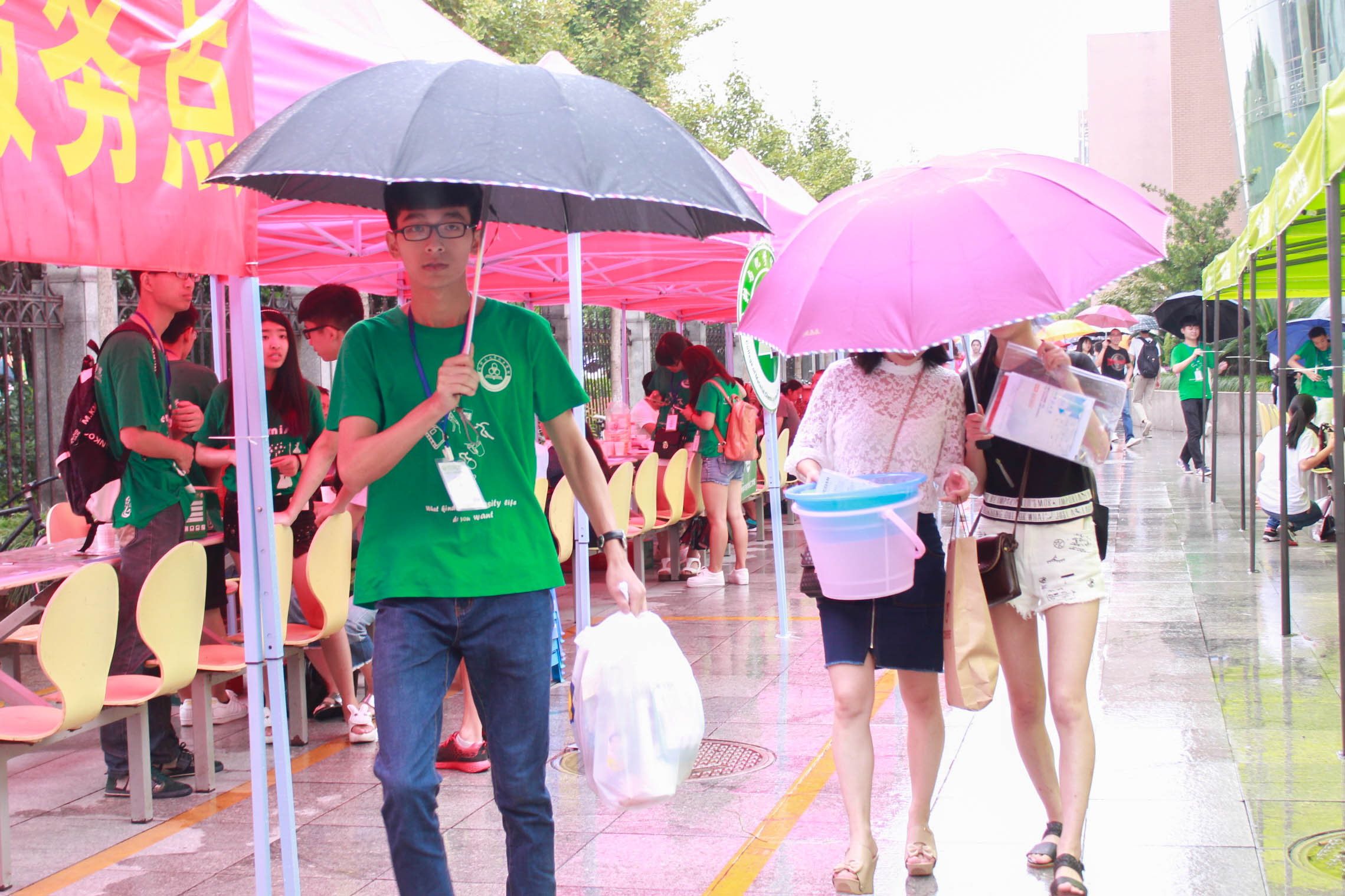 至于迎新过程中遇到令人感动的事,施晓旎面带微笑地说:“当时雨下得很大,志愿者们都没有带伞,新生主动为我们撑伞遮雨。”虽然这只是一个微小的细节,却让我们感受到了志愿者们心中浓浓的暖意,想必这份满足足以抵挡拍打在他们身上的雨水。