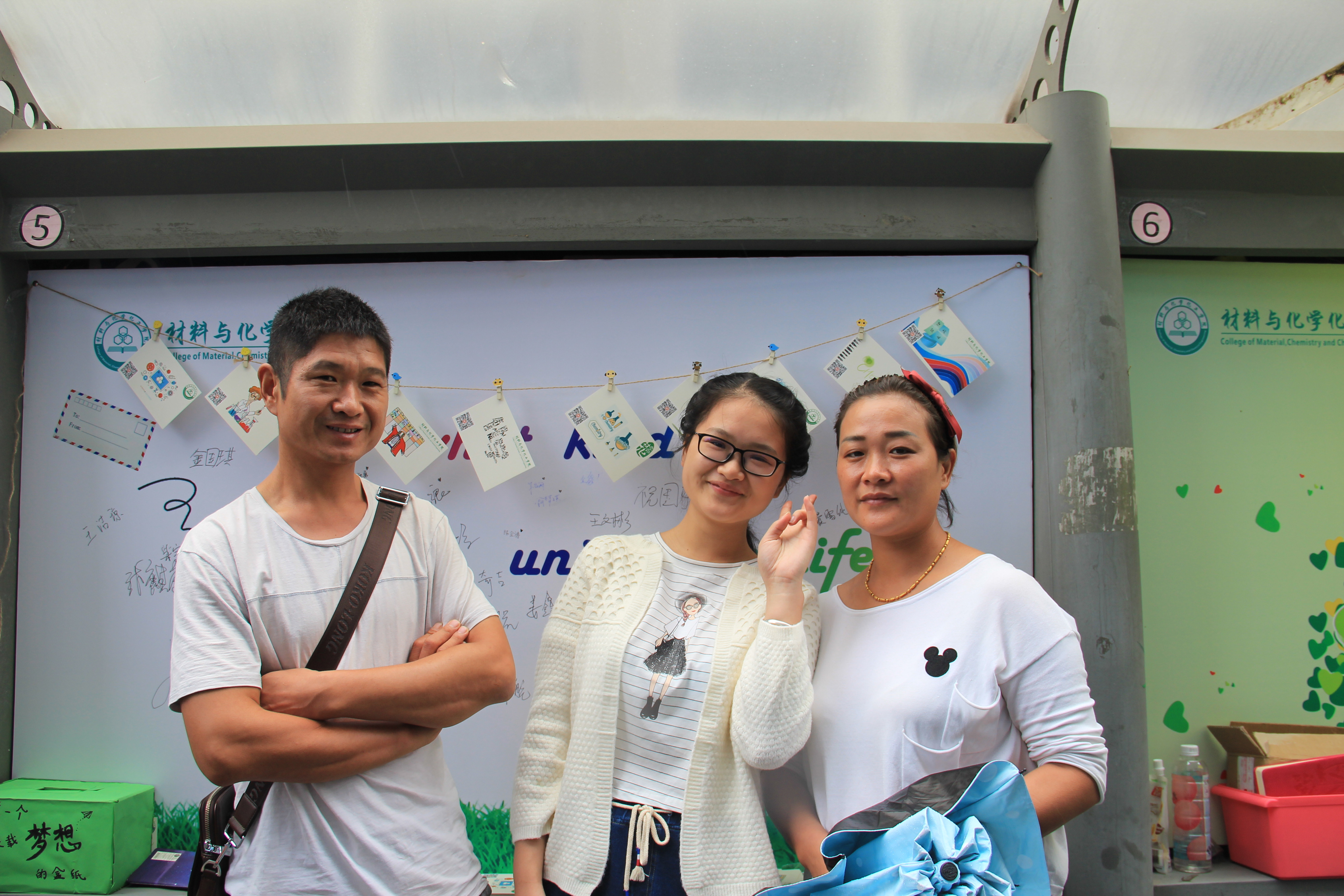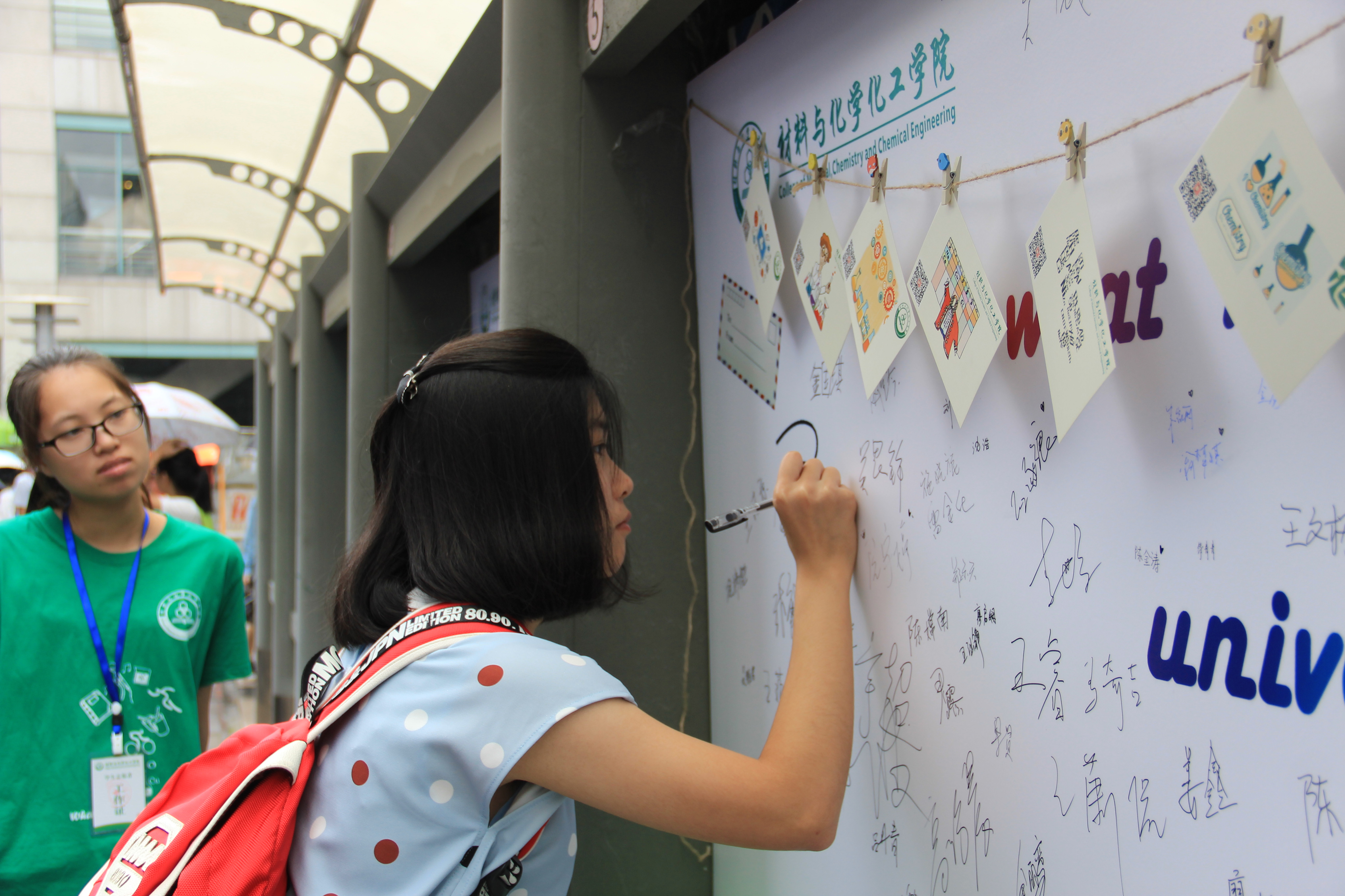 在新生到来的同时,同样充满朝气的,还有一道靓丽的风景线,便是属于材化的绿色。那是大学生会的志愿者们,身着绿色的院服,驻守在各自的岗位,用自己的热情去迎接每一位新生。