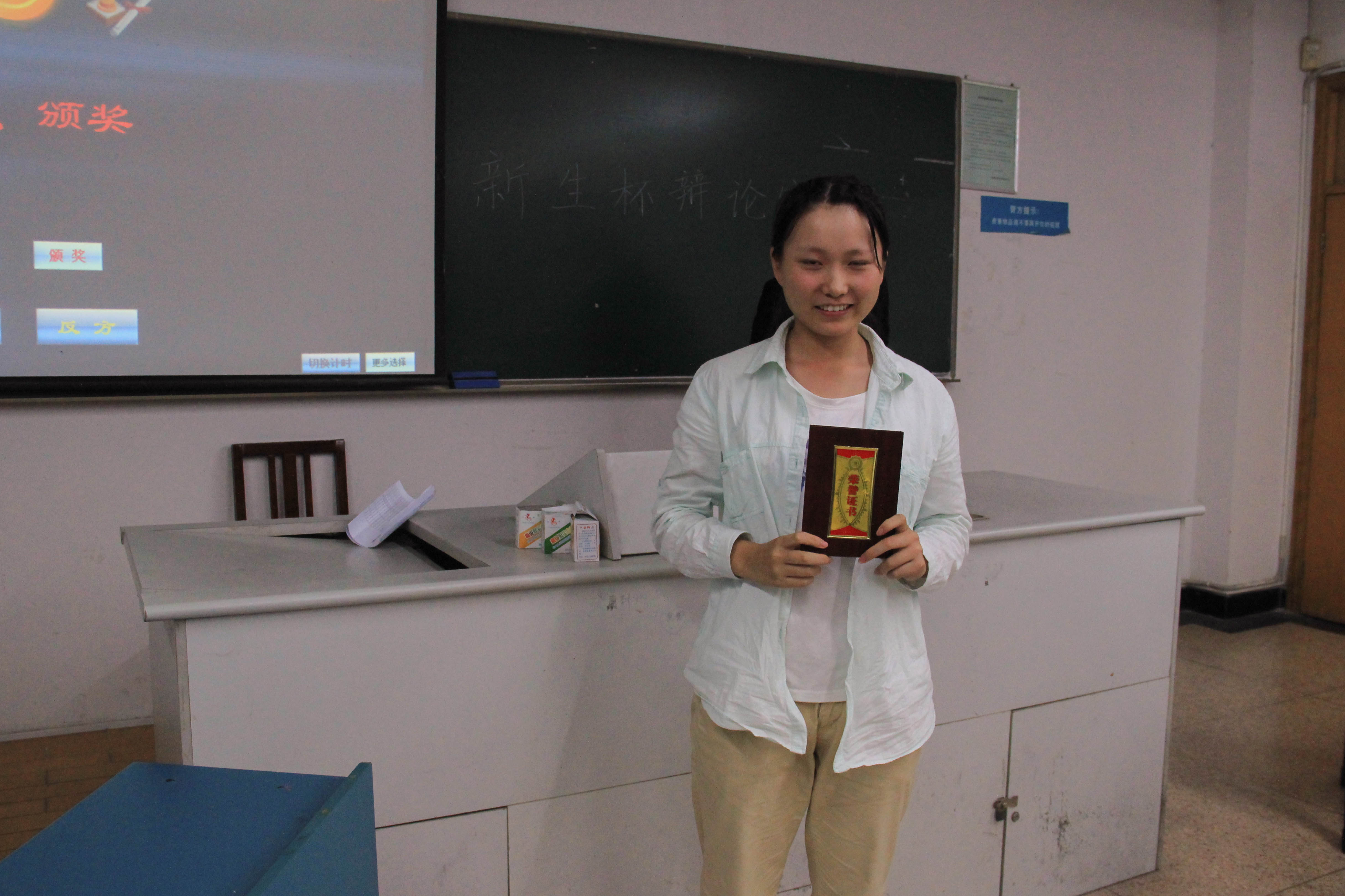 初赛分两场进行。首场参赛选手分别是来自应化161的正方选手与高分子162的反方选手。他们围绕着“行善是否应该高调”的论题展开了激烈的辩论。从高调行善的陈光标、被逼捐款的马云,到公交车让座的行为,辩论双方以清晰的逻辑思维与合理的驳斥赢得在场观众的热烈掌声。最终,首场辩论以正方获胜告终,反方一辩陈静晓同学则成为本次最佳辩手。第二场比赛正、反方分别是来自高分子161与化师161的选手。他们围绕着“代沟的主要责任是在家长还是在孩子”这个问题进行深入的探讨。选手以清晰流利的表达阐述自方观点。比赛中后期的自由辩论激烈,正方辩手引用各种事例向反方提问。来自化师的四位女生严谨认真的回答使在座观众称赞。现场气氛今人紧张而又激动。第二场比赛以反方的取胜告终,而此次的正方二辩也获得了最佳辩手的荣誉奖项。辩论结束后,学长学姐对赛程中出现的问题进行批判与点评。深刻的见解使参赛选手获益匪浅。本次新生杯辩论赛初赛在同学们的一片掌声中圆满落幕。