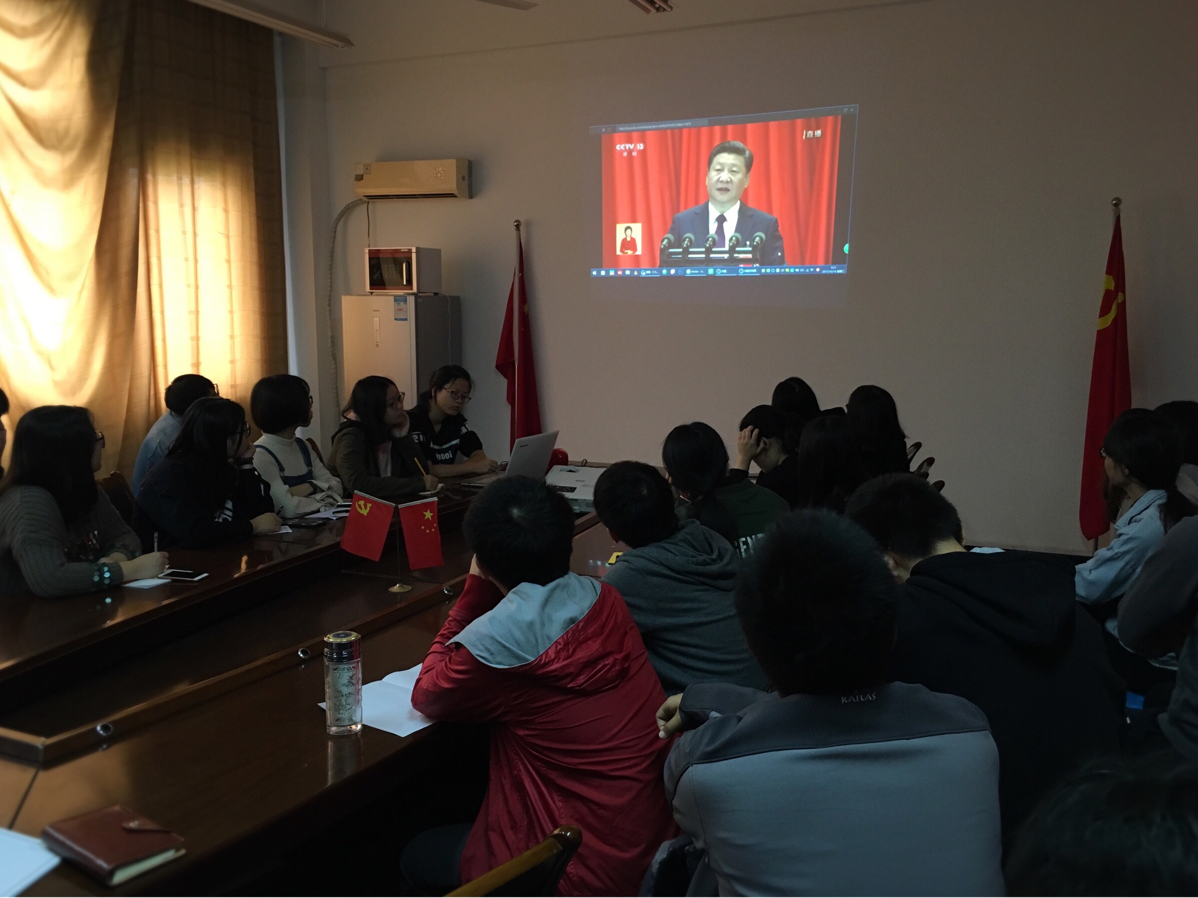 10月18日上午9点,博彩网 党委分别于位于下沙校区博彩网 和仓前校区有机硅化学及材料技术实验室的党员之家组织师生代表观看了正在人民大会堂大礼堂举办的中国共产党第十九次全国代表大会开幕会。博彩网 教工党员、学生党员及其他师生代表积极到场观看直播。