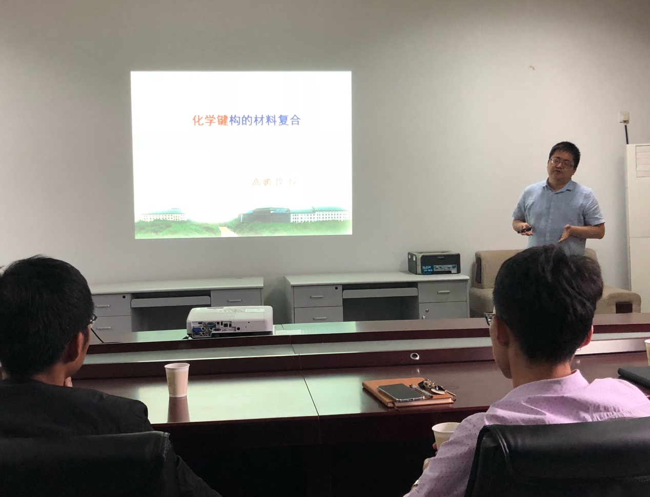 随后,由高鹏教授和张坚教授分别就自己的研究工作进行了介绍。高老师报告讲述的是化学键构的材料复合。主要有化学键引发的多样性,化学键构涉及的领域等几个方面,同时提出他目前的研究方向(储氢,催化制氢和微波吸收)以及今后主要往全分解催化制氢的方向重点攻克。张老师报告讲述的是导向下的烯烃活化和官能团化。主要介绍了合成丁二烯衍生物,γ-丁内酯以及杂环类化合物的发展历史和前景,以及最后重点介绍自己近几年的工作(丁二烯苯乙烯类衍生物的合成和天然产物结构的合成)。报告引起了在场老师的热议,会议在头脑风暴中圆满结束。