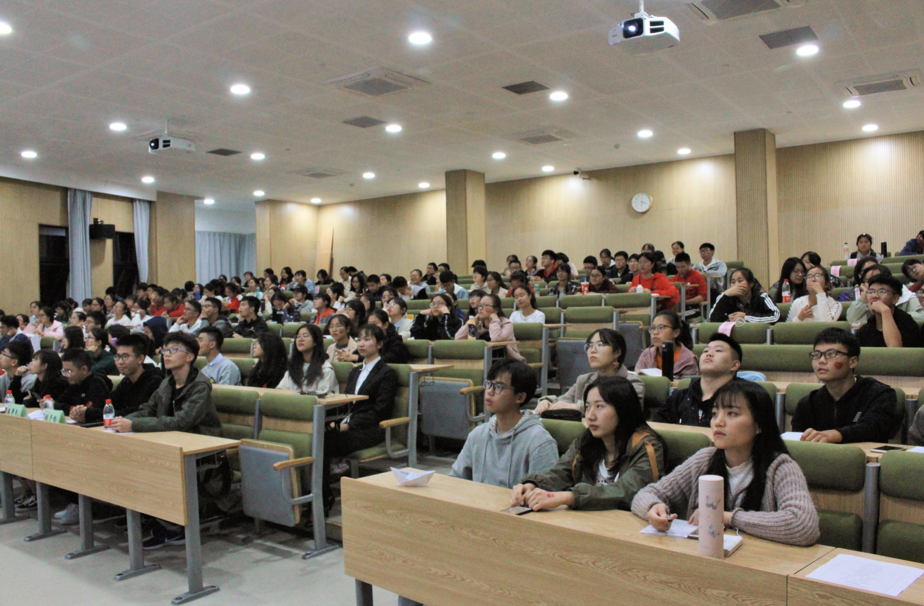 在分享会开始前,团委在教室外开展了外场活动——给同学们贴团委专属纹身贴并教同学们剪纸或折纸。本次活动分为两个部分,第一部分是暑期社会实践活动的分享。社会实践团队负责人分享了实践活动开展的流程以及中途遇到的困难。在初步了解社会实践策划与组织的过程之后,在座的大一同学们积极地提出各种各样的问题。团队负责人耐心解答了同学们提出的问题,在一问一答中,同学们对暑期社会实践活动有了更深入的了解。在十九大的有奖问答充分调节了现场气氛之后,活动进入了第二部分——团日活动分享。此次团日活动围绕十九大展开,各班团支部、团支书用自身经验告诉同学们应该如何组织团日活动、如何完善活动流程以及如何解决遇到的困难。听了团支书的分享之后,同学们才意识到团日活动顺利展开的背后凝结了许多人坚持不懈的努力,亦对团日活动有了更加深刻的认识。