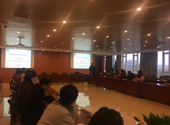 纪顺俊教授作了题为“异腈的多组分反应”的学术报告。博彩网 相关研究领域的师生认真聆听了本次报告。纪顺俊老师从异腈化学的研究出发,介绍了利用多组分反应或串联反应合成具有生物活性的含S、Se、N、P等杂环化合物的研究,并且分享了基于异腈研究的最新研究成果。报告引起了在场师生的广泛兴趣,与会人员积极提问并进行了深入的交流与讨论。本次报告开阔了与会师生的学术视野。