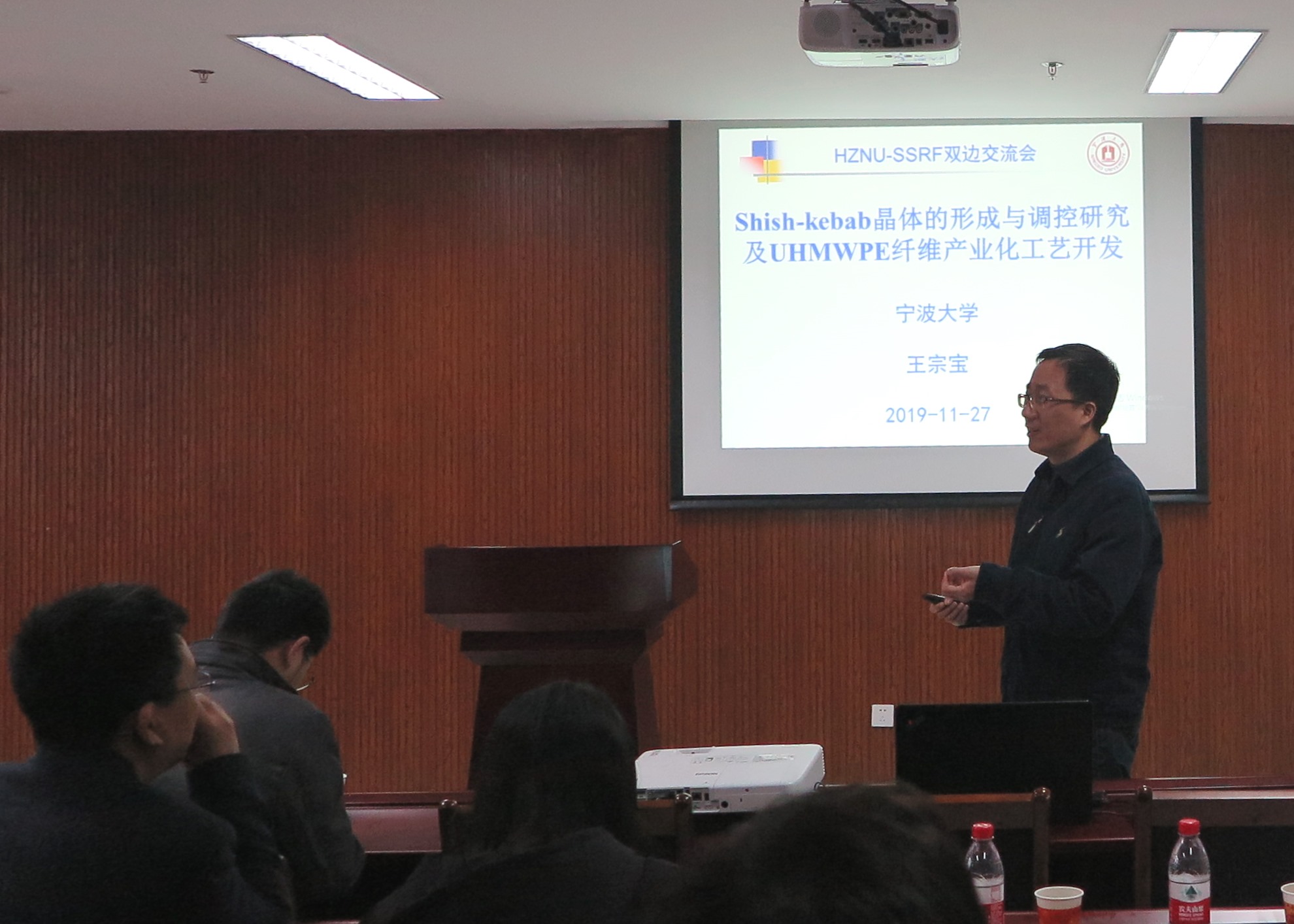 2019年11月27日上午8:45分,HZNU-SSRF双边交流会在杭州师范大学勤园17号楼208成功召开,其中杨春明研究员、徐君庭教授、林金友研究员、王宗宝教授、李秀宏研究员和由吉春教授等人在会议上为材化师生做了学术报告。