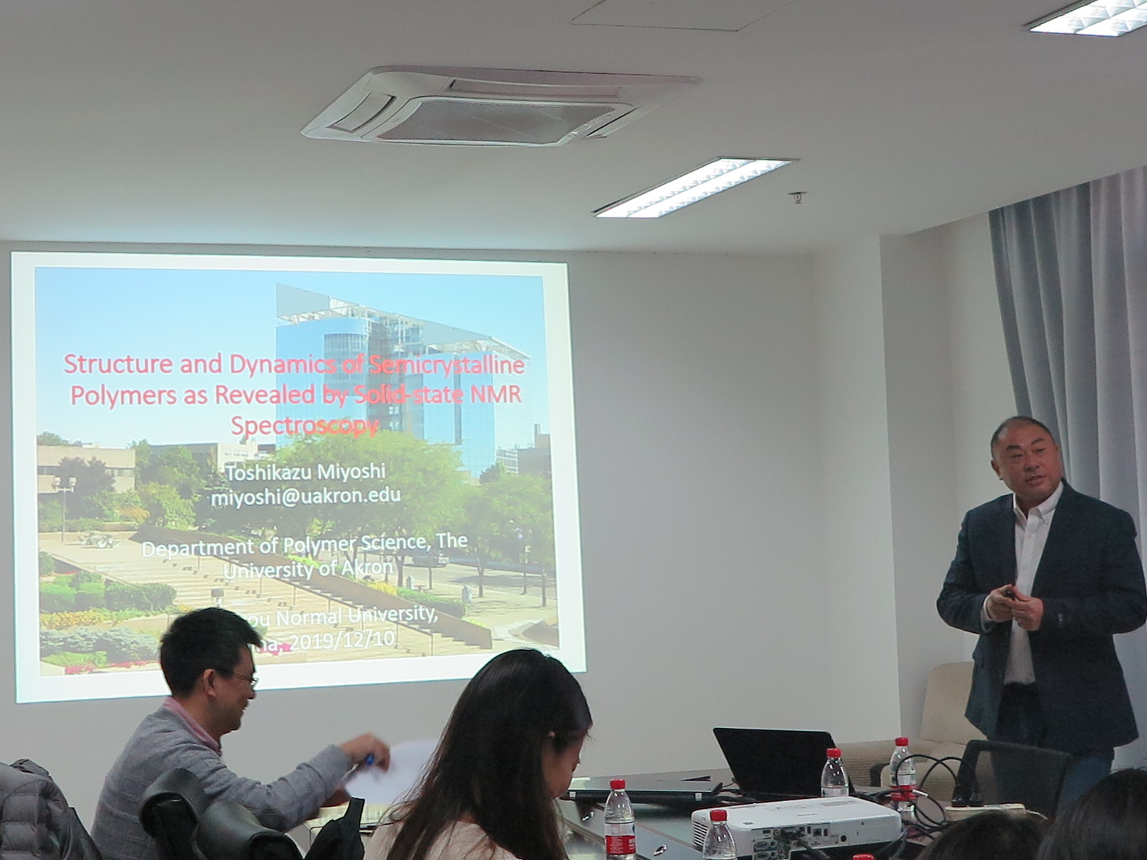 2019年12月10日上午10:00,应十大博彩评级网 李勇进教授的邀请,阿克隆大学Toshikazu Miyoshi教授来博彩网 作了题为“Structure and Molecular Dynamics of Semicrystalline Polymers by Solidd-state NMR”的精彩报告。博彩网 相关专业30余名师生聆听了讲座。
