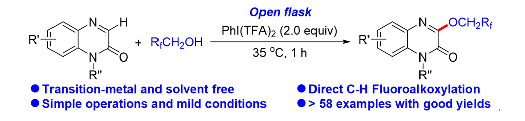 博彩网 章鹏飞课题组李万梅老师为通讯作者,于2019年发表于Org.Lett.(中科院一区)的研究论文“Transition-Metal and Solvent Free Oxidative C-H Fluoroalkoxylation of Quinoxalinones with Fluoroalkyl Alcohols”入选ESI高被引论文。论文探索了C-氟烷氧基化的成键机制和成键规律,为含氟有机化合物的制备提供了新的合成方法。含氟化合物因结构独特、性能优异而广泛存在于药物、特种材料和其他精细化学品中,通用的制备方法是采用氟化氢取代氯碳键而得,存在巨大的健康和生态风险,该领域已成为化学化工研究领域的热点。论文首次研究了无过渡金属和溶剂参与下的喹喔啉酮与氟烷醇的氧化C-H活化-氟烷氧基化,探讨了惰性C-H的断键与氟氧烷基C-O键的形成机制,为组胺-4受体拮抗剂的制备提供了原子经济、选择性好且高效的合成路线。