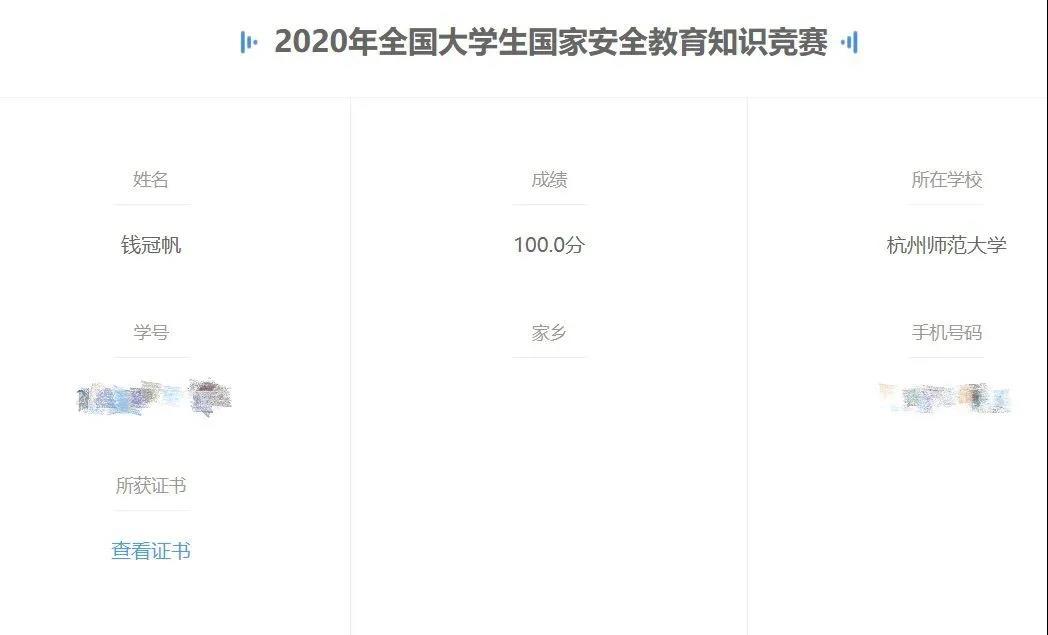 另外同学们还积极地参与了线上国家安全教育知识竞赛,不仅取得了优异的成绩,还巩固了对国家安全教育的学习。