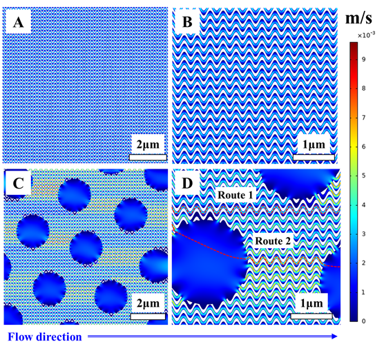 图1单级孔薄膜与“海岛”多级孔薄膜内的传质情况模拟