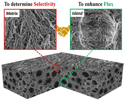 图4 “海岛”多级孔薄膜分离性能提升机理示意图