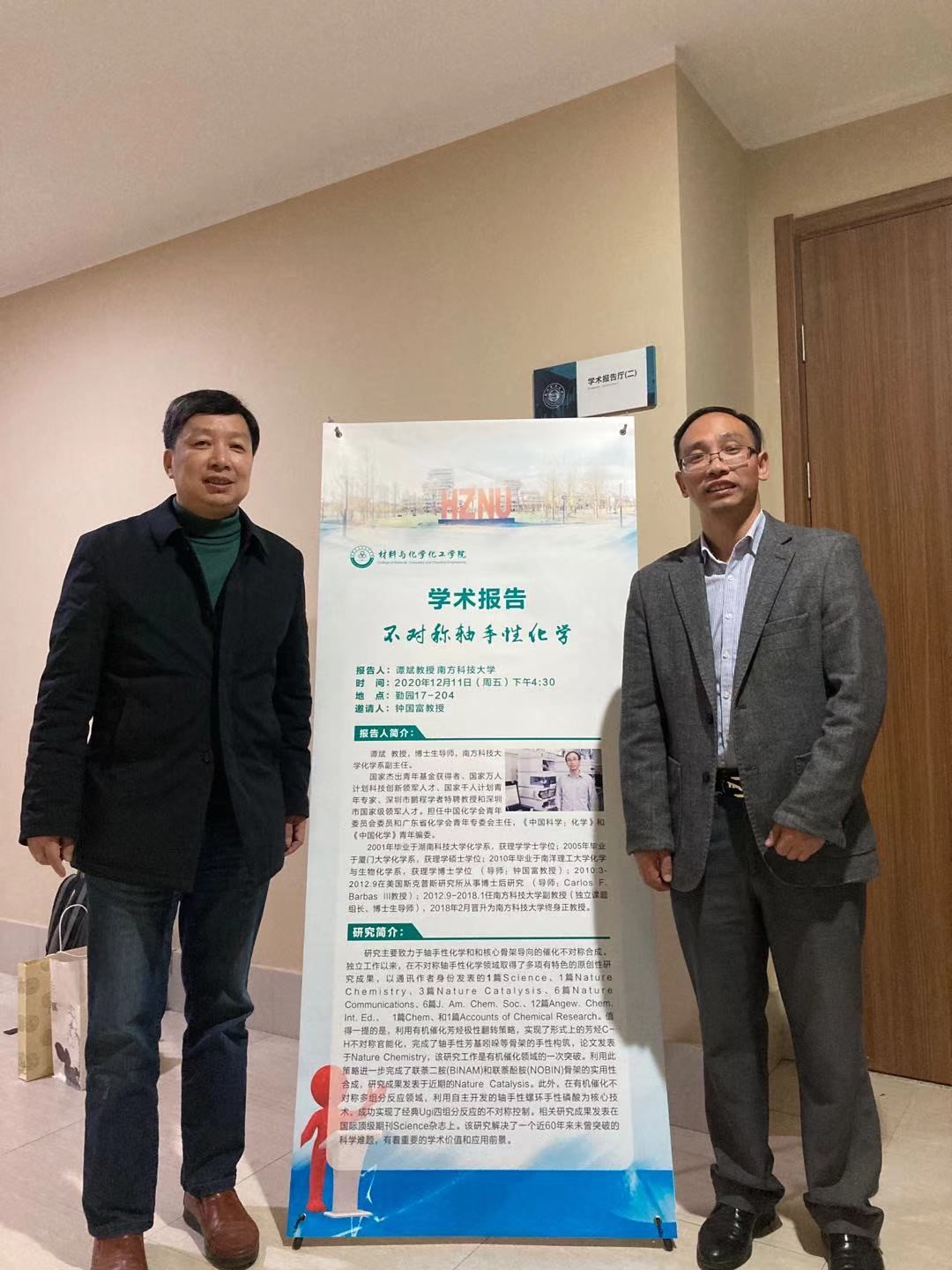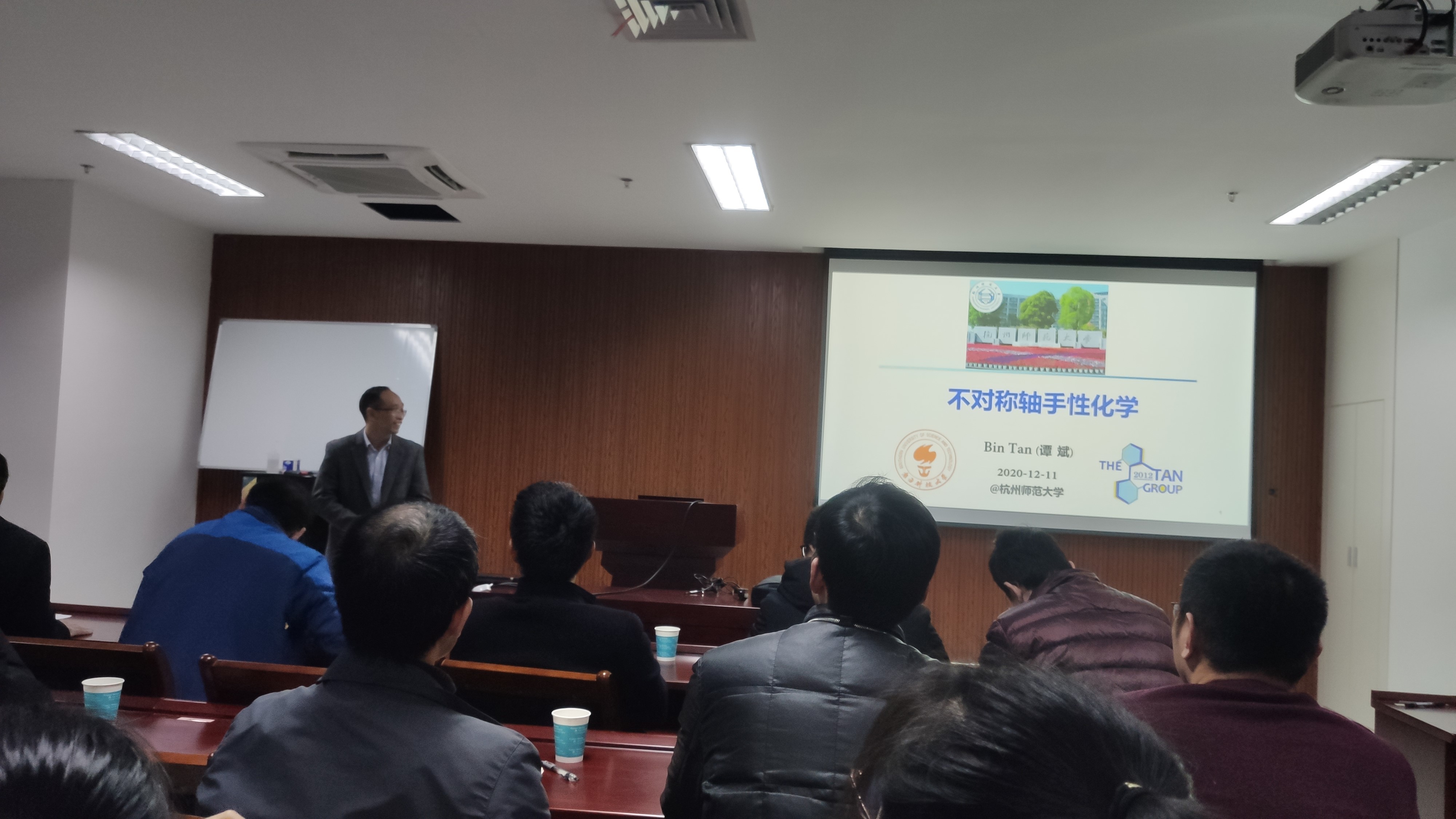 2020年12月11日下午,国家杰出青年基金获得者、南方科技大学化学系副主任谭斌教授应钟国富教授邀请来我校讲学,并在勤园17号楼210室为博彩网 师生作了题为“不对称轴手性化学”的精彩报告。博彩网 院长章鹏飞教授、有机硅化学及材料技术教育部重点实验室执行主任兼十大博彩评级网 副院长徐利文教授,副院长曾晓飞教授,有机硅化学及材料技术教育部重点实验室副主任李志芳教授等参加了报告,报告由钟国富教授主持。