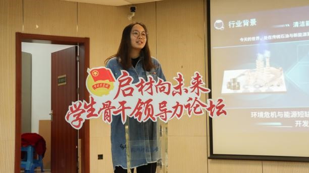 在领导力论坛上,挑战杯国赛二等奖项目负责人张佳晨、“互联网+”省赛二等奖项目负责人顾悦琳进行了现场路演展示。
