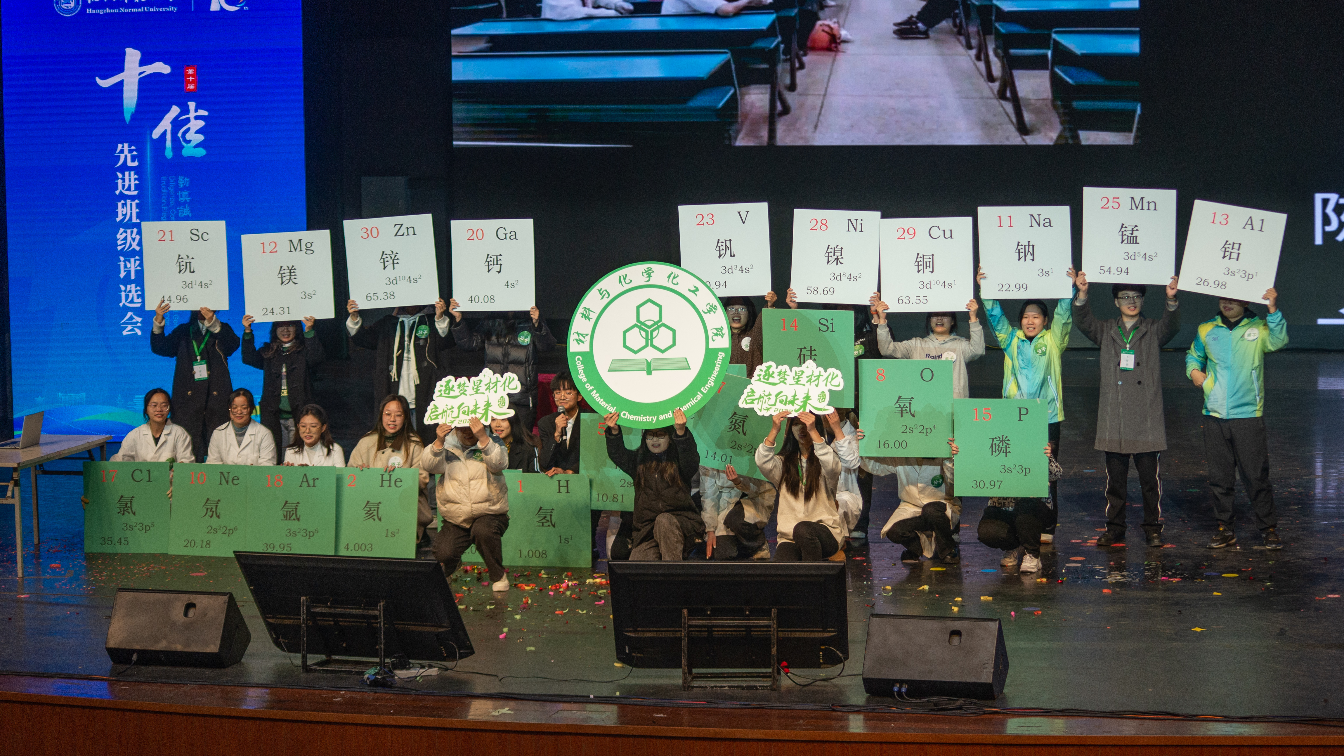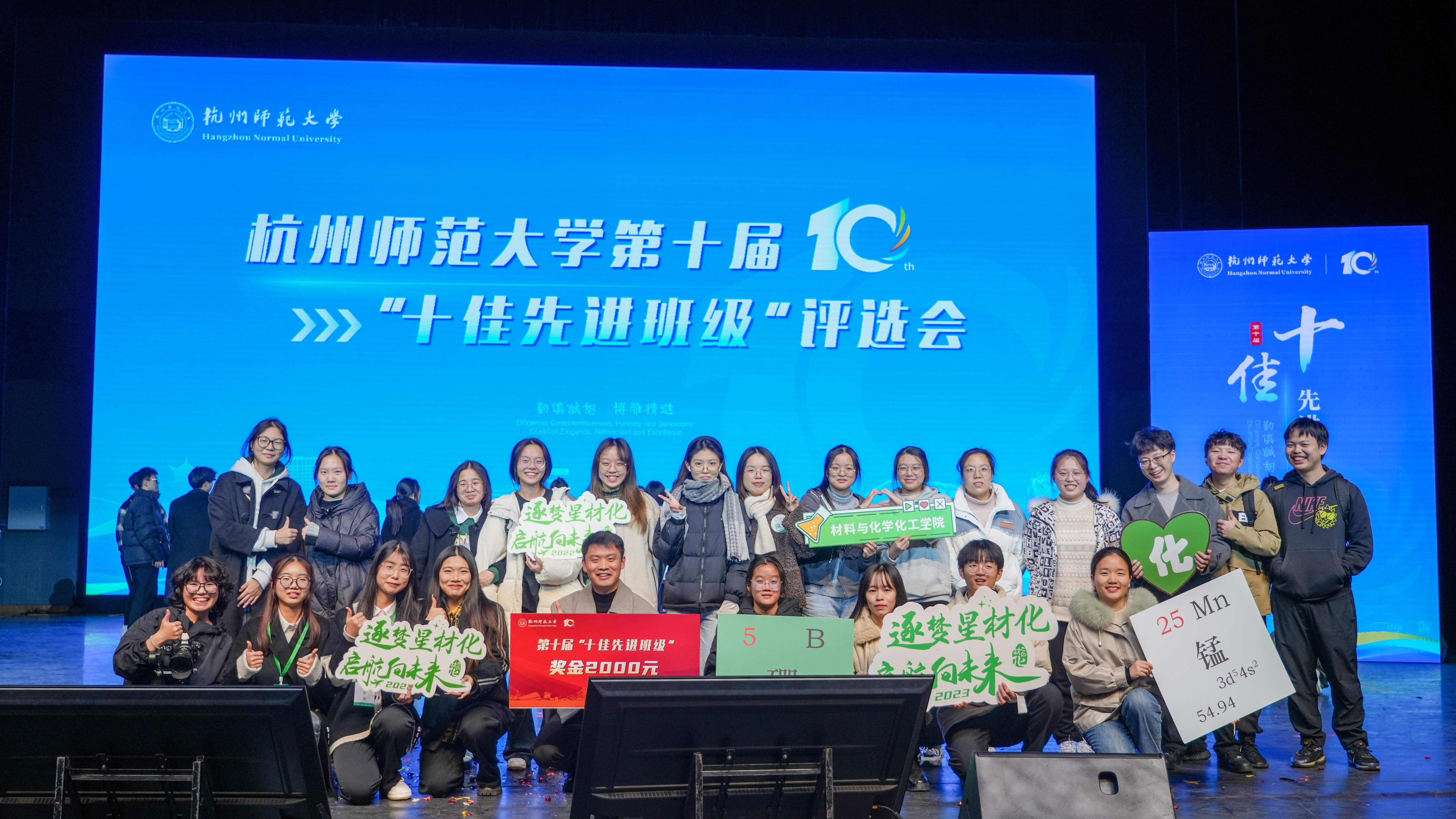 在主持人的播报下,在同学们的精彩演绎下,一幕幕场景向评委们形象展示了微弱的能量是如何通过能量传递,最终汇聚成一股巨大的能量,迸发出闪耀光芒的过程。同时也向大家展示了化师211班的累累硕果,彰显了材化学子求学向上、勤勉共进的精神品质。最终,化师211班不负众望,拿下了杭州师范大学第十届“十佳先进班级”称号。