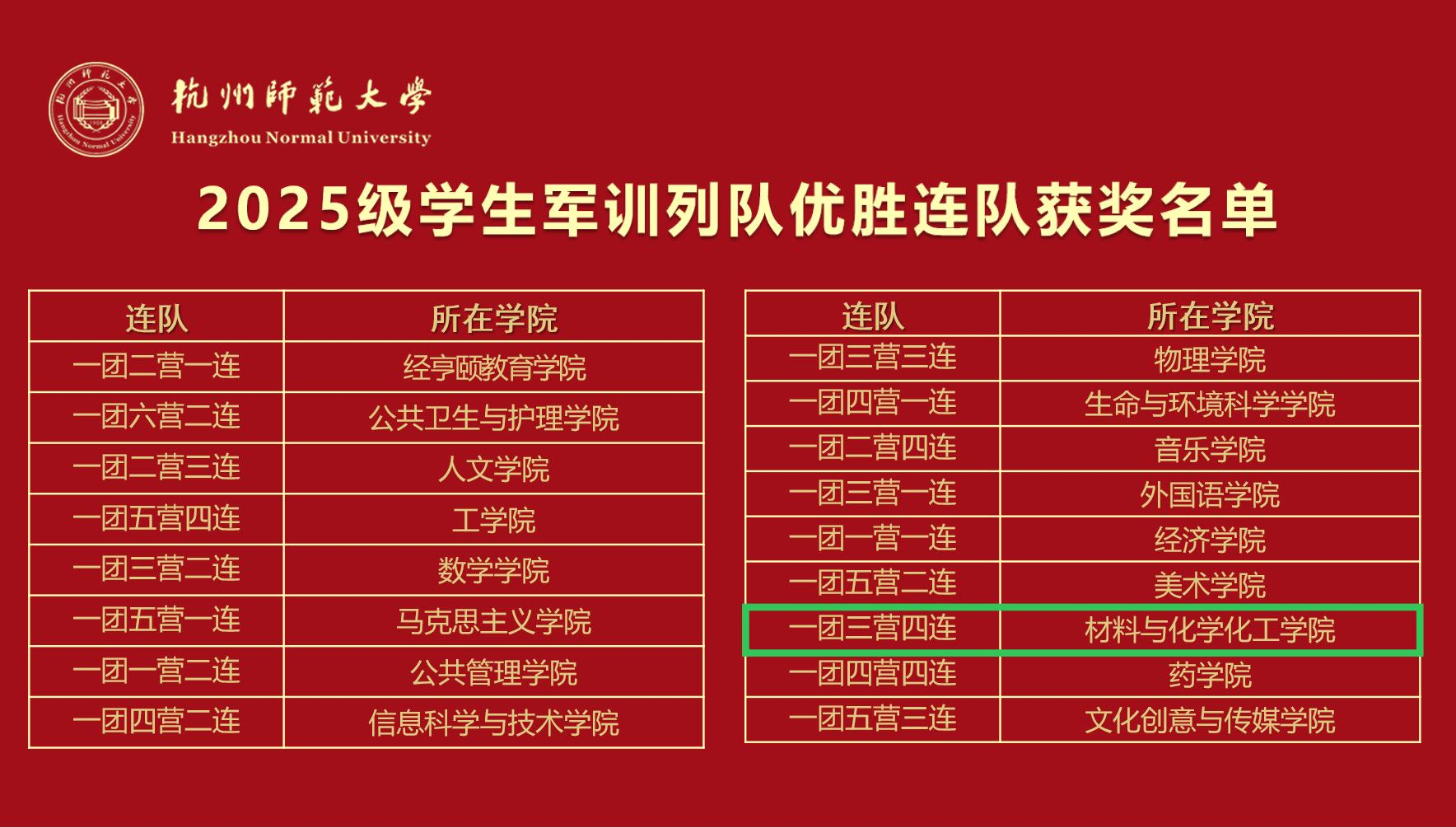日常训练之中,材化人的成长宛若一部纪录片娓娓道来:从炎炎烈日下的坚守,再到蒙蒙细雨中的坚韧,军训的每一帧时间都承载着他们的成长与蜕变。这次军训不仅培养了他们坚韧不拔的内心,铸就了他们强健的体魄,更让他们在无数的齐步走与军姿站立中,明悟出团队的魅力,以此大步迈向更加美好灿烂的未来。最终博彩网 获评军训列队优胜连队。