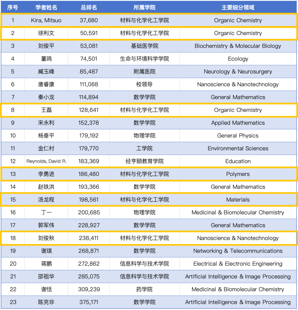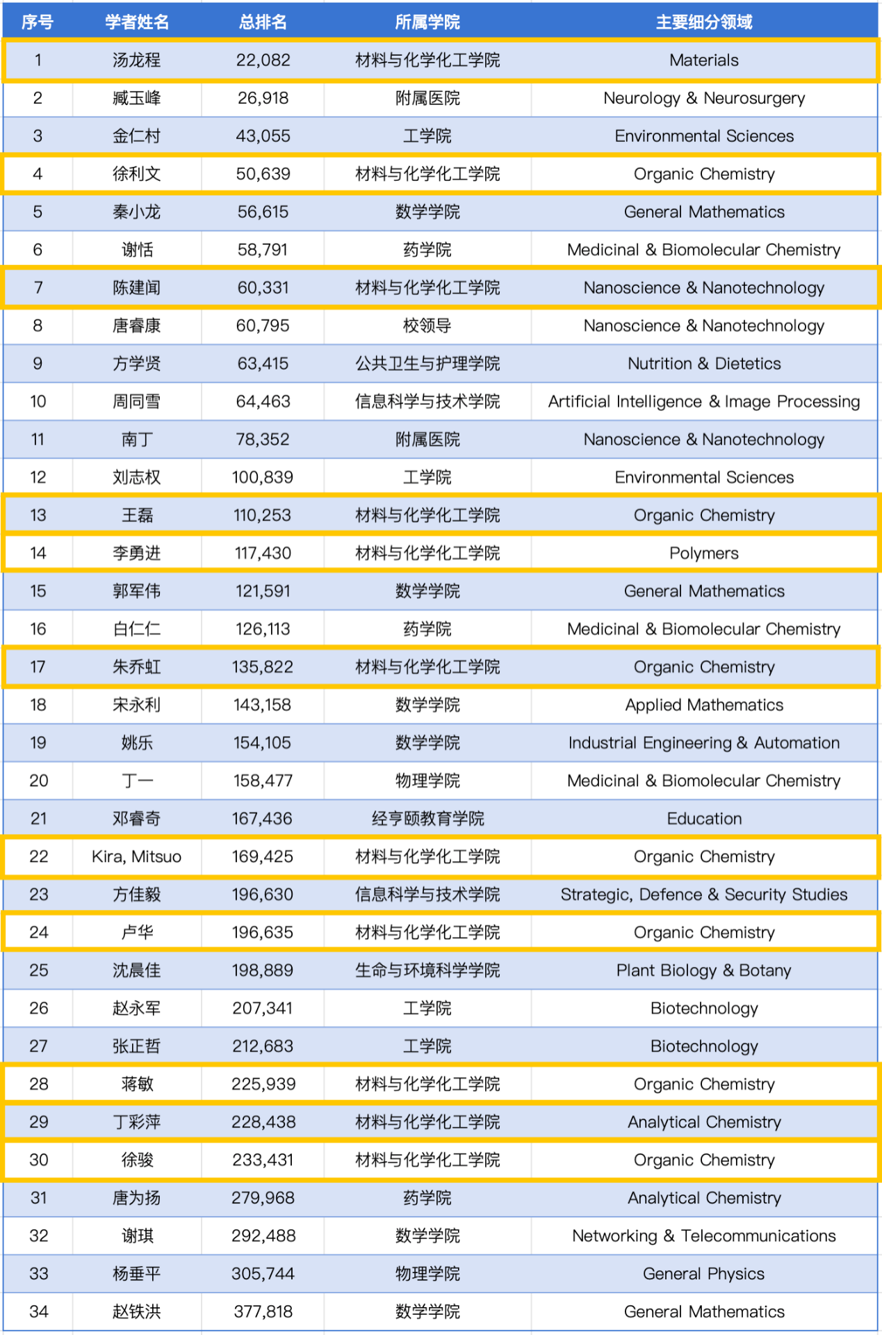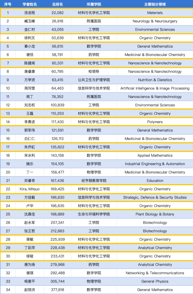 全球前2%顶尖科学家榜单是斯坦福大学John P. A. Ioannidis教授团队与Elsevier合作的一个项目成果,发布在Elsevier旗下的Mendeley Data网站上。榜单从近700万名科学家中遴选出世界排名前2%的科学家,排名分22个领域和176个子学科领域。该榜单基于Elsevier Scopus的数据,使用了六种关键指标综合评估来进行打分。主要指标如下:1)总引用量,2)Hirsch H-index,3)共同作者修正的Schreiber Hm-index,4)单独作者,5)单独或者第一作者,6)单独、第一或者最后作者的文章引用量。榜单分为“终身科学影响力排行榜”和“年度科学影响力排行榜”两个榜单。