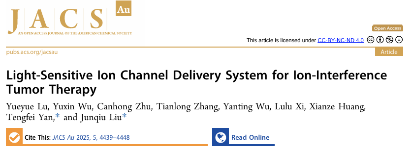 近日,博彩网 刘俊秋教授团队在光控人工离子通道用于肿瘤治疗领域取得重要突破。相关研究成果以题为 “Light-Sensitive Ion Channel Delivery System for Ion-Interference Tumor Therapy” 发表于国际化学领域顶级期刊 JACS Au上。