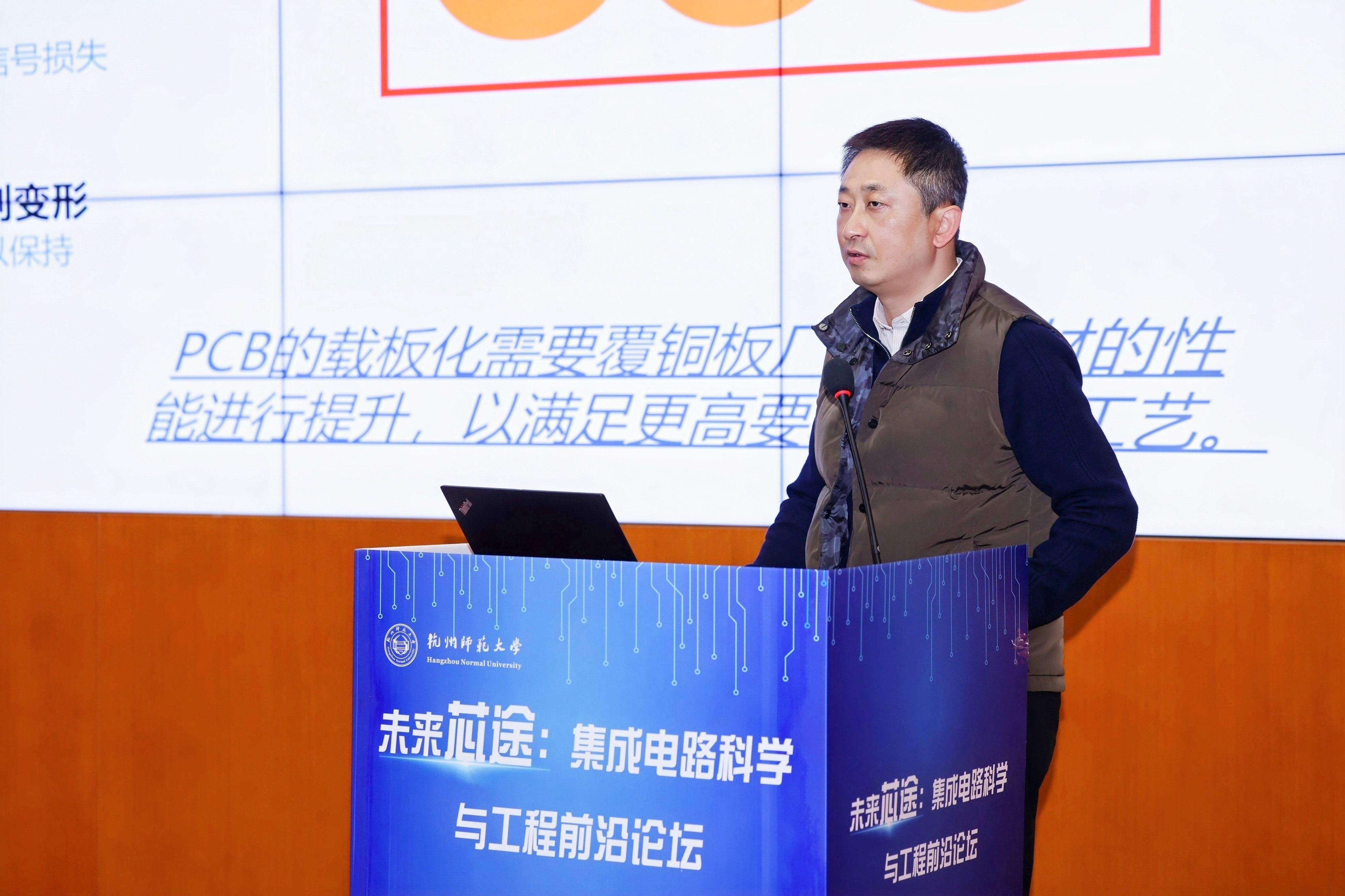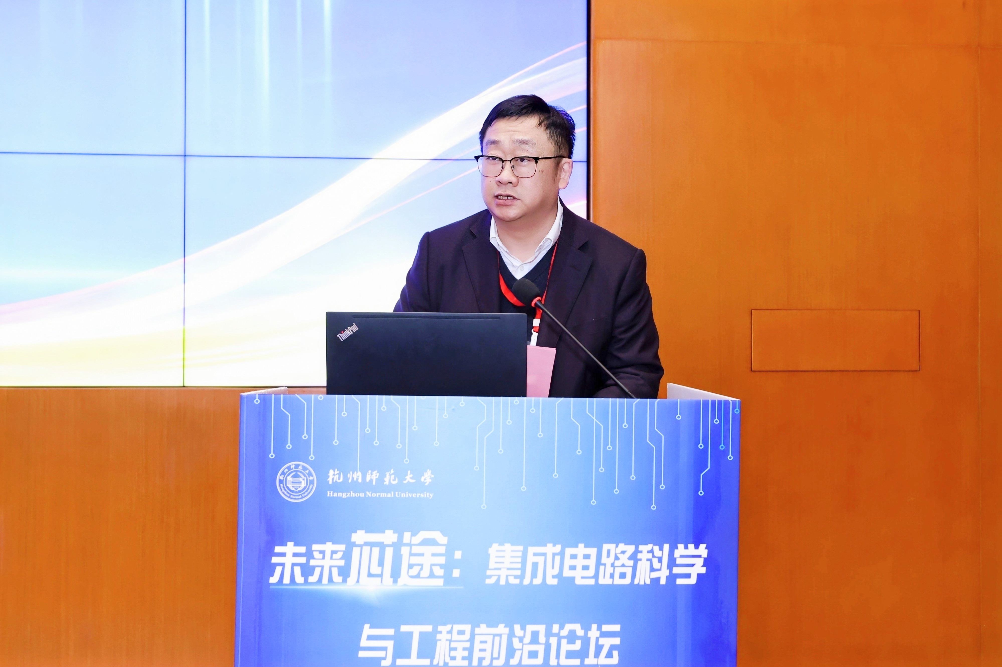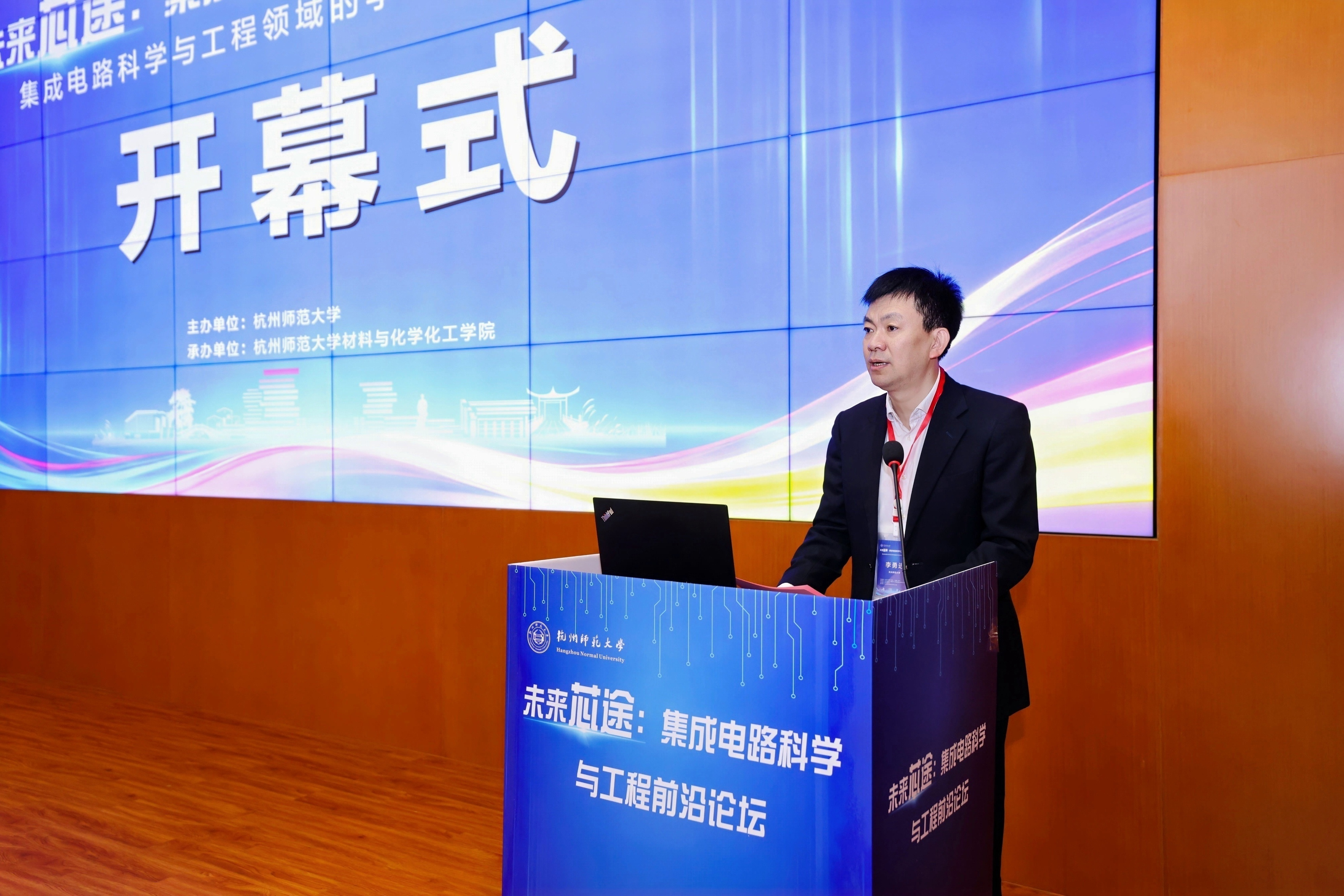 张杭君代表学校向与会嘉宾表示热烈欢迎和衷心感谢。他指出,发展集成电路产业是国家的重大战略部署,集成电路已成为现代工业的“心脏”和战略安全的核心要地。杭州师范大学作为一所以师范教育为传统、文理并重的综合性大学,近年来在学科建设与科研创新方面取得了一系列突破。学校高度重视集成电路相关学科的发展,正积极谋划建设集成电路与新能源功能膜材料工程研究中心,依托学校在材料、化学、物理、信息等领域的学科基础与人才储备,力争实现新的突破。他强调,集成电路是高度交叉融合的学科,其发展离不开多学科的深度协同与产学研的紧密合作。本次论坛的举办恰逢其时,希望与会专家深入交流、碰撞思想,共同为我国集成电路事业发展贡献力量。