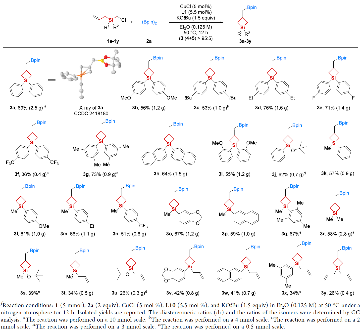 图2-3 铜催化制备硼甲基官能化硅杂环丁烷的底物普适性研究