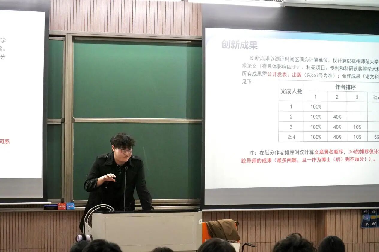 为充分发挥优秀研究生榜样引领作用,大会还邀请了优秀学长吴同意来分享申博经验。他结合自身申请经历,围绕目标院校选择、导师联系技巧、研究计划撰写、面试准备等关键环节进行深入剖析,为有志于继续深造的同学提供了宝贵的一手经验与实用建议。鼓励学弟学妹们尽早明确目标、合理规划时间、夯实科研基础,以扎实的学术积累迎接未来挑战。