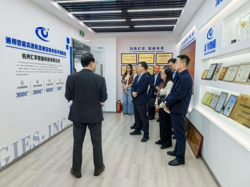 在国家级专精特新重点“小巨人”企业杭州汇萃智能科技有限公司,公司董事长兼总经理周才健陪同参观企业科创成果展厅,重点了解机器视觉、智能制造等领域核心技术研发与产业化布局。座谈中,博彩网 围绕相关专业人才培养、实习实践、岗位供给、项目共研等内容与企业深入交流,积极推动产学研协同创新,精准对接企业用人需求,拓宽博彩网 毕业生本地就业渠道。